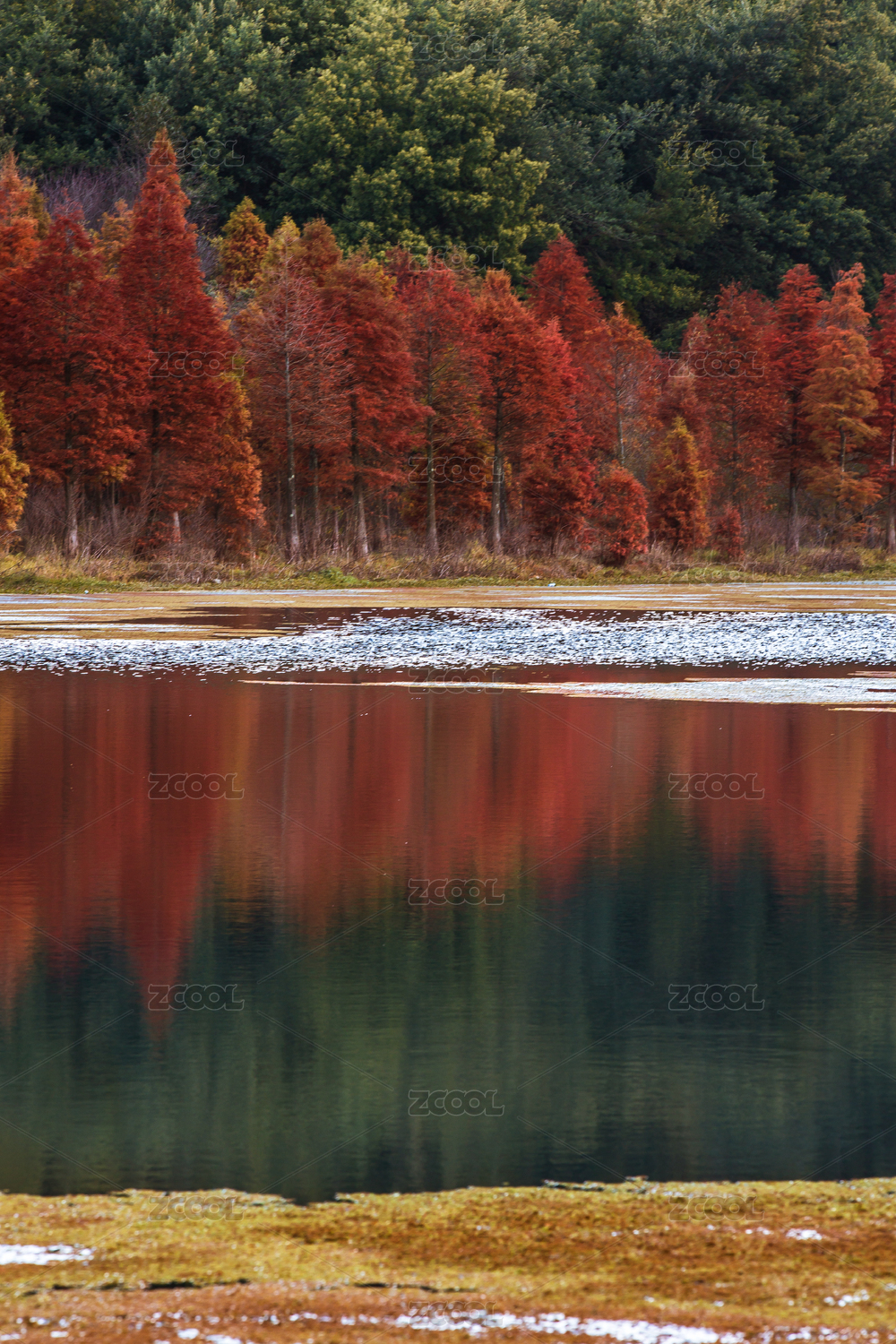 户外,风光,景色,冬季,公园,芙蓉湖,城市,红杉树,倒影,湖面