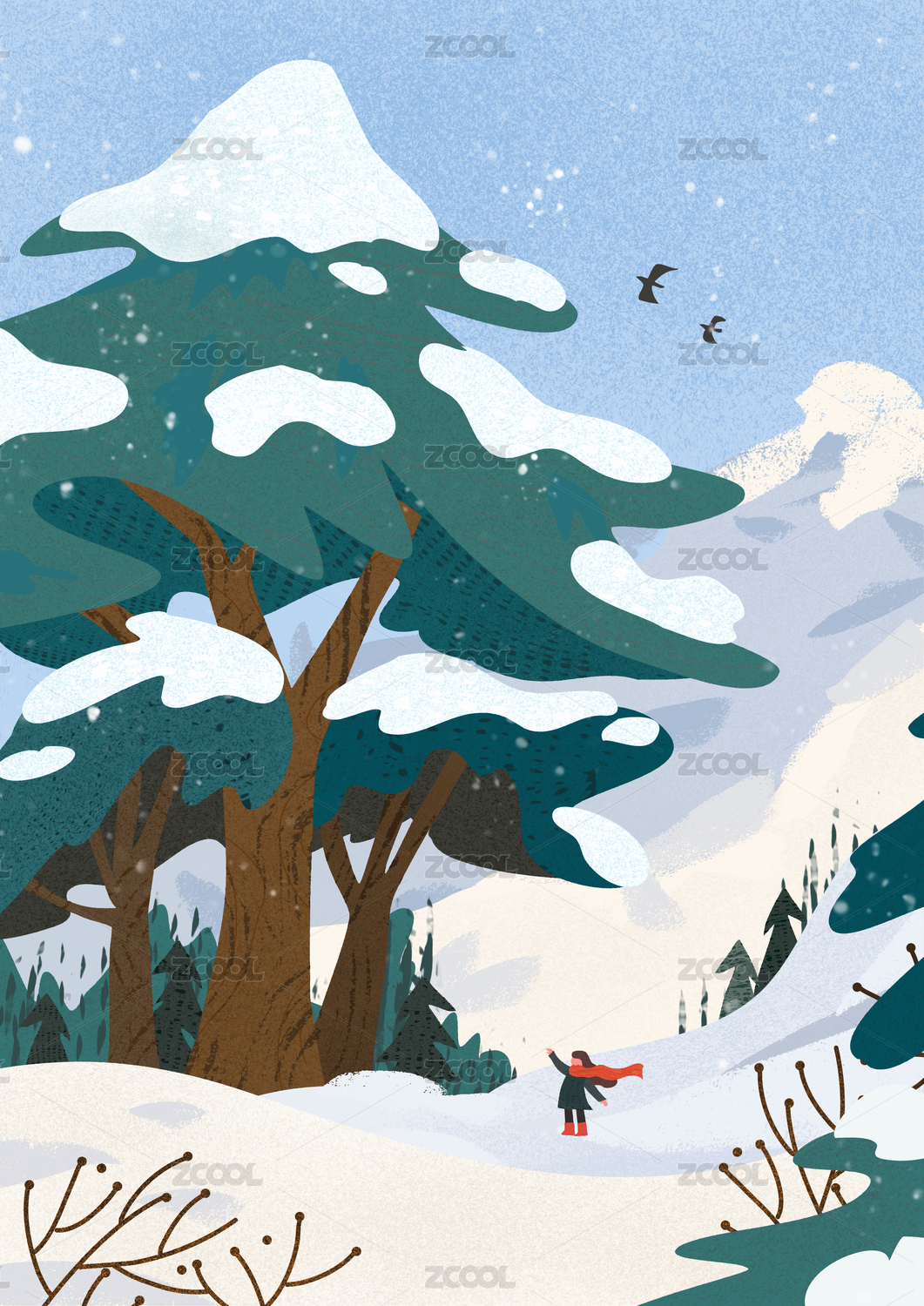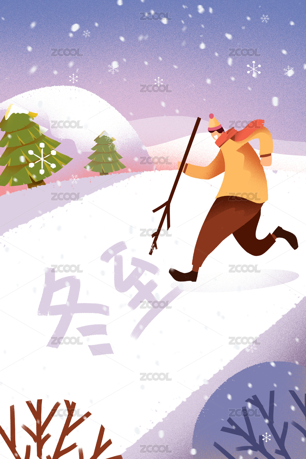 卡通手绘冬天冬至大寒小寒节气雪地插画