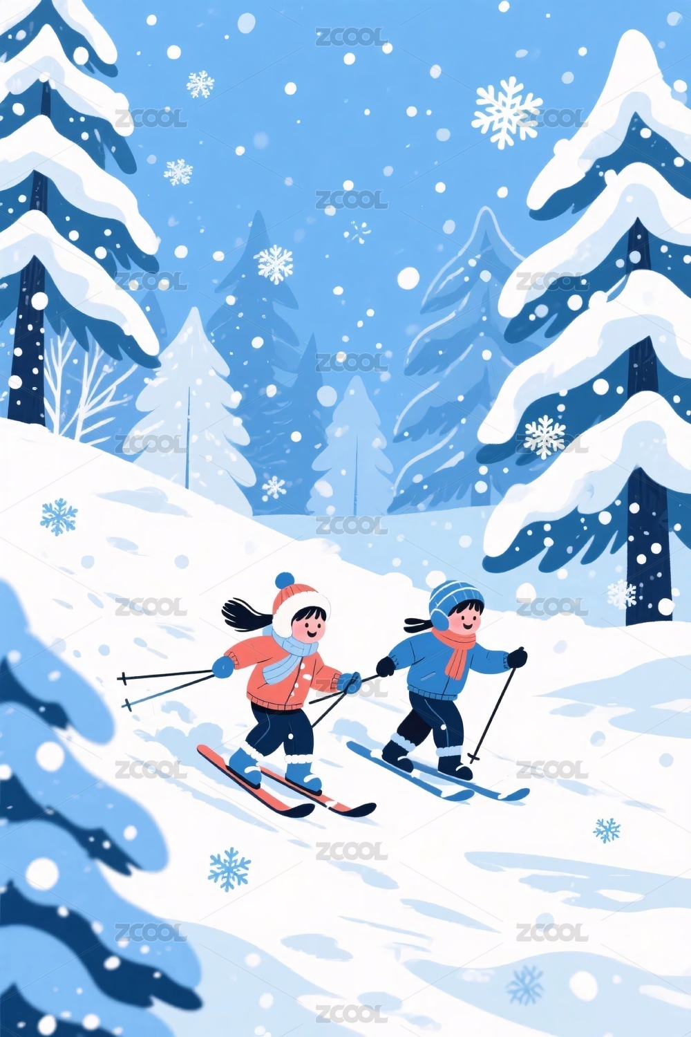 冬天人物滑雪插画冬奥会比赛项目体育海报