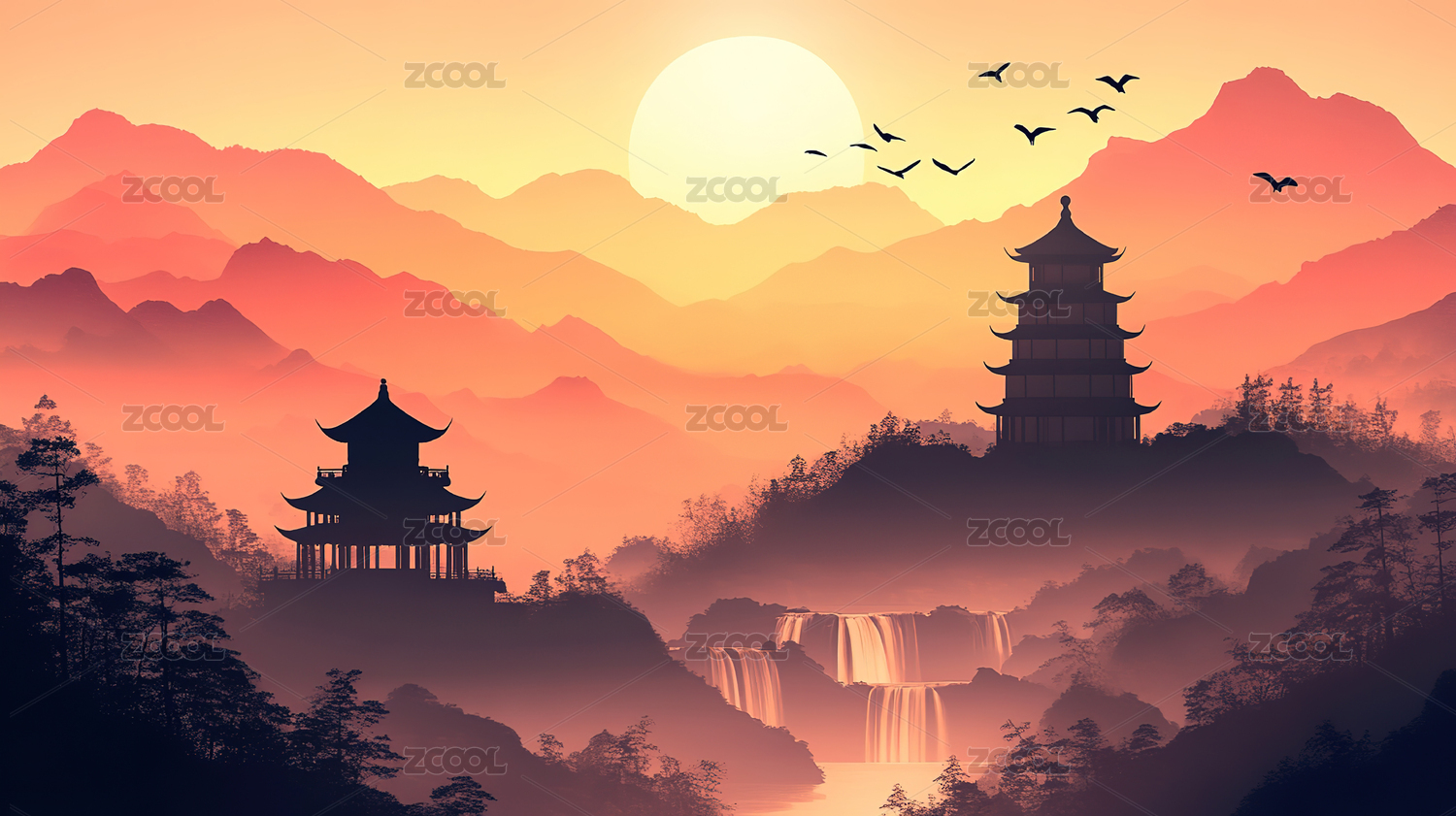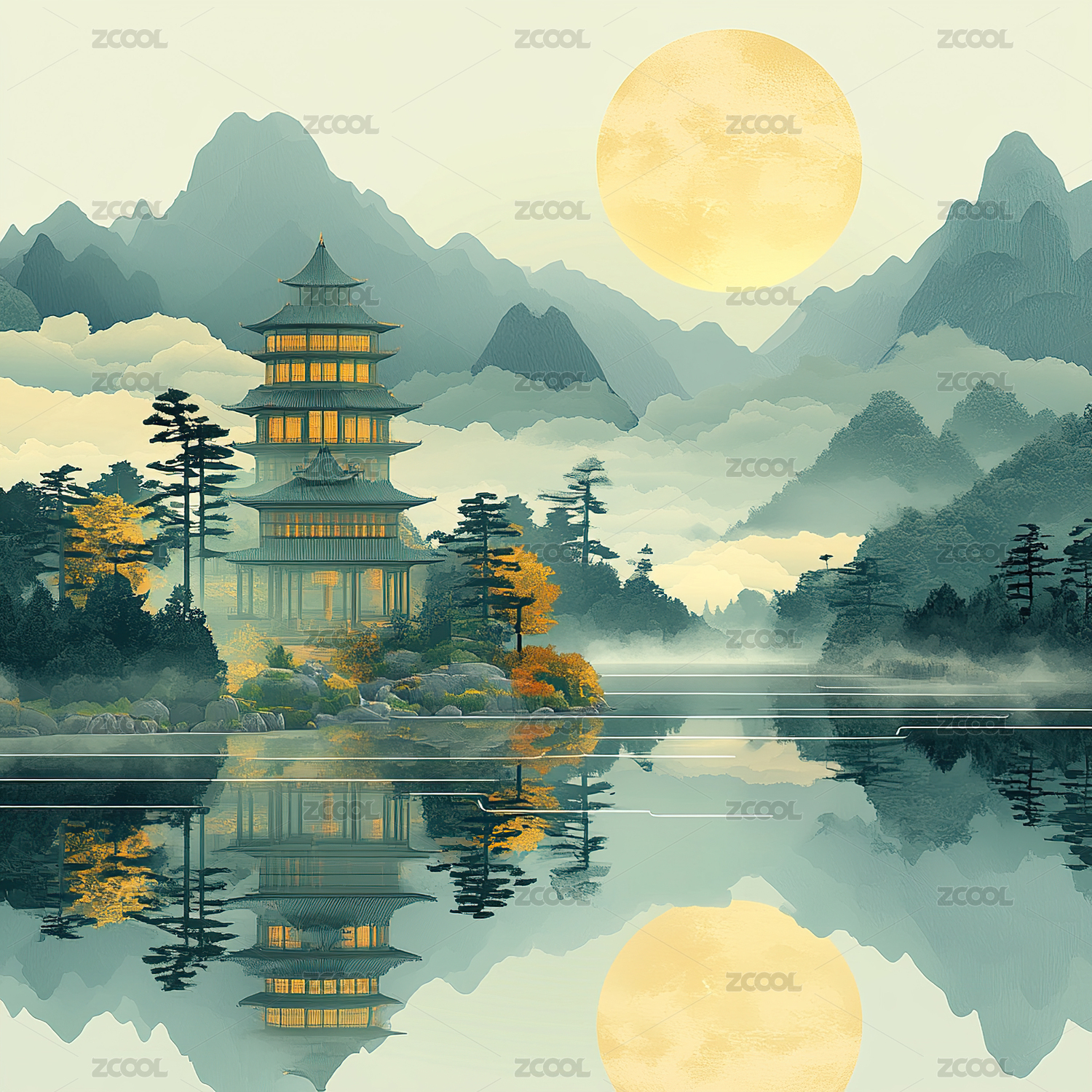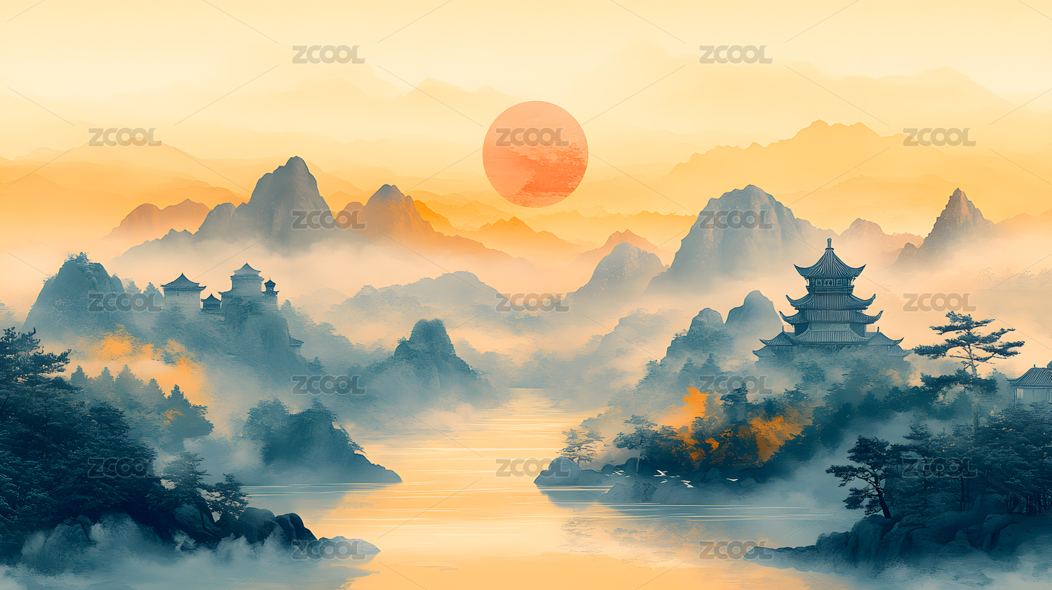 中国,艺术,插画,装饰,设计,背景,文化,水墨,水彩,古典