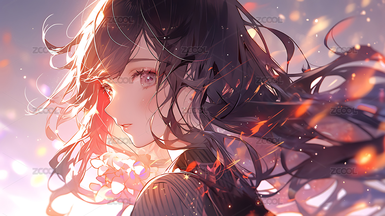 长发飘逸的动漫少女