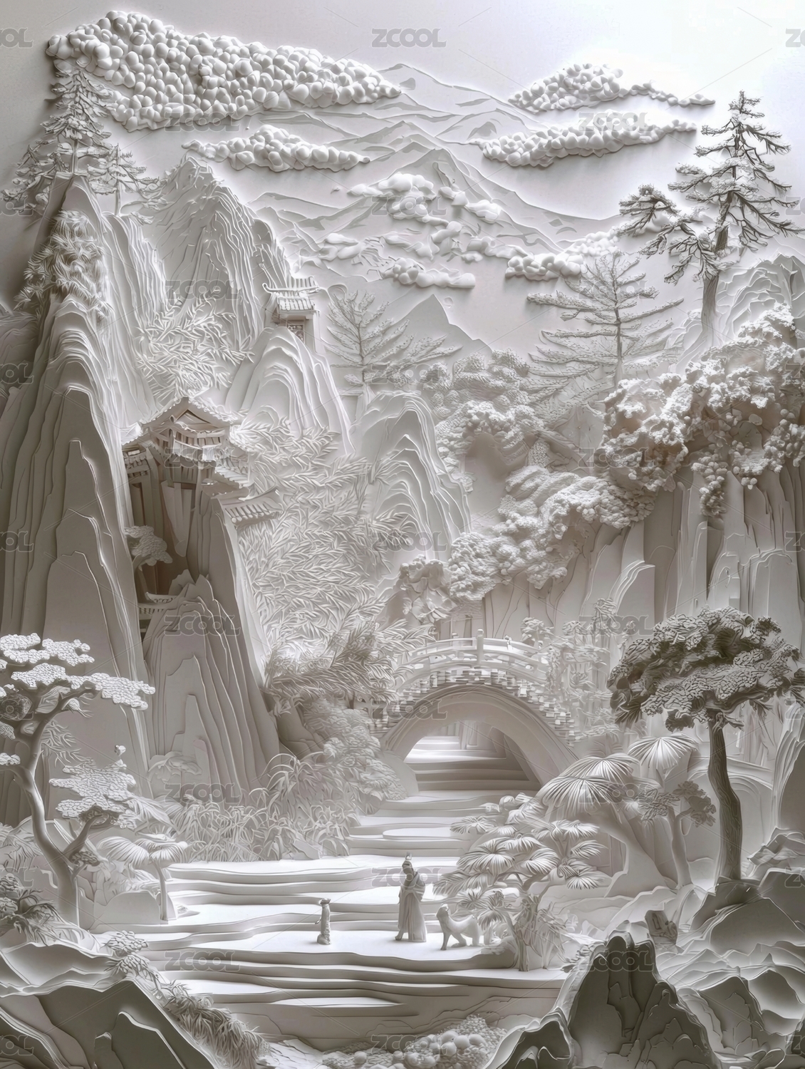 3D,风景,自然,艺术,山脉,优雅,宁静,祥和,山水画,建筑