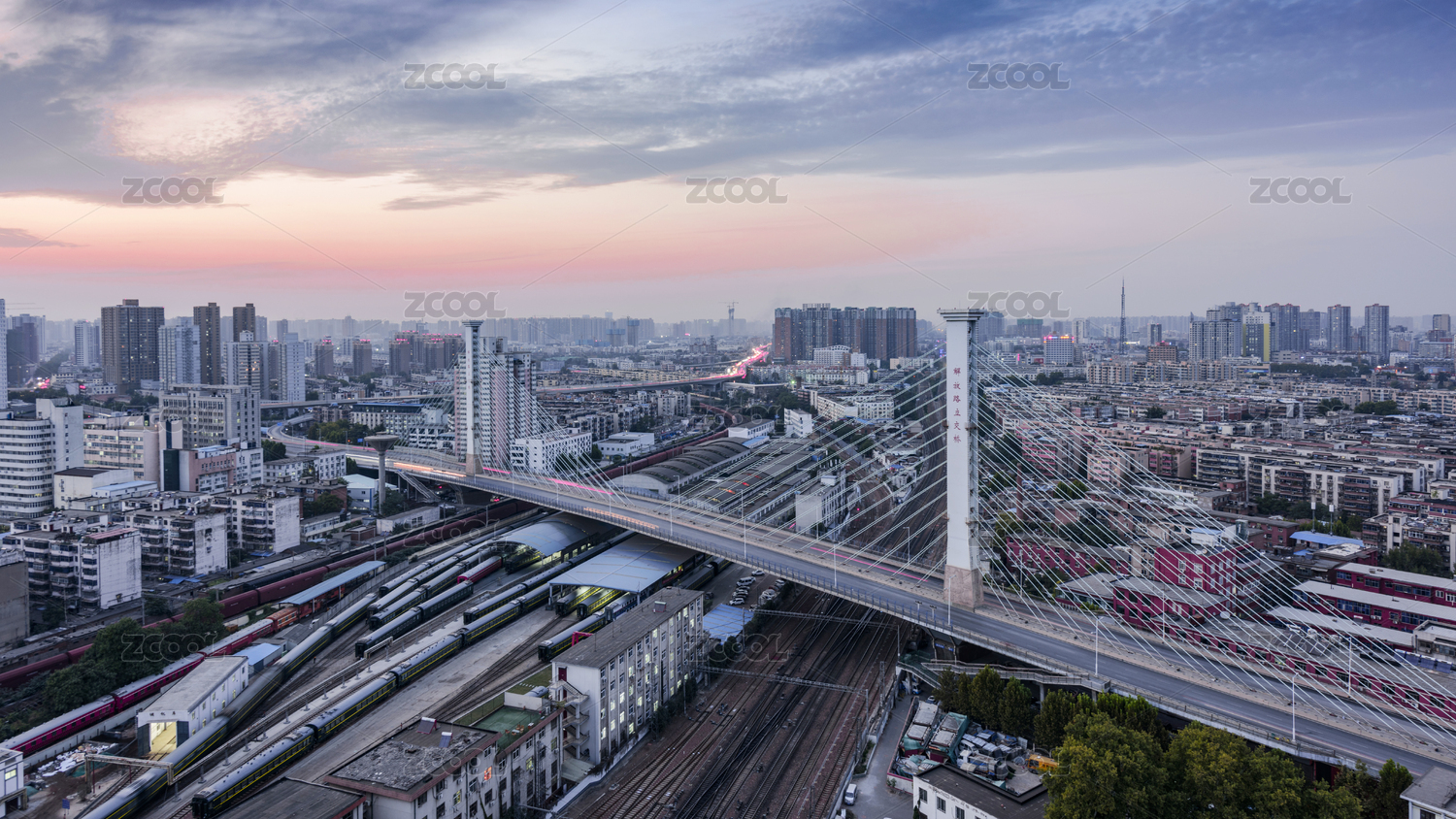 郑州解放路大桥夜间火车通过