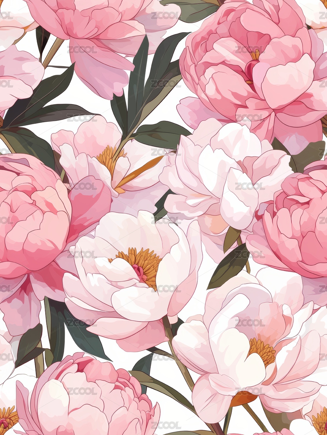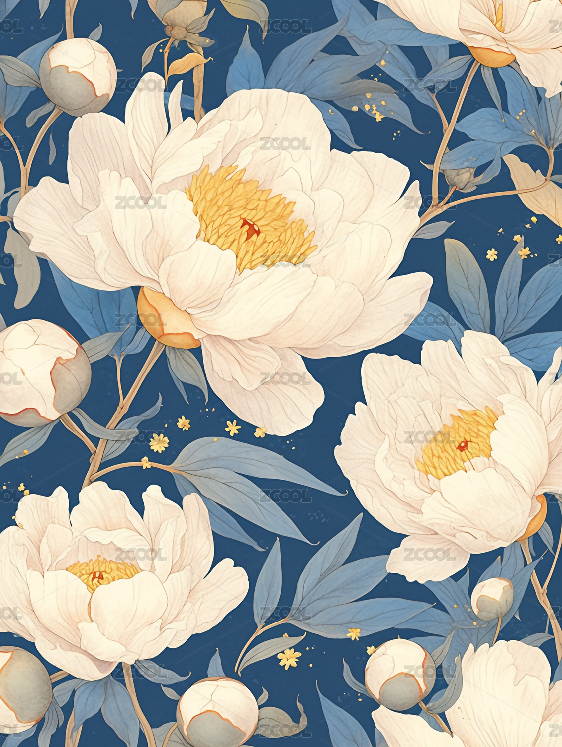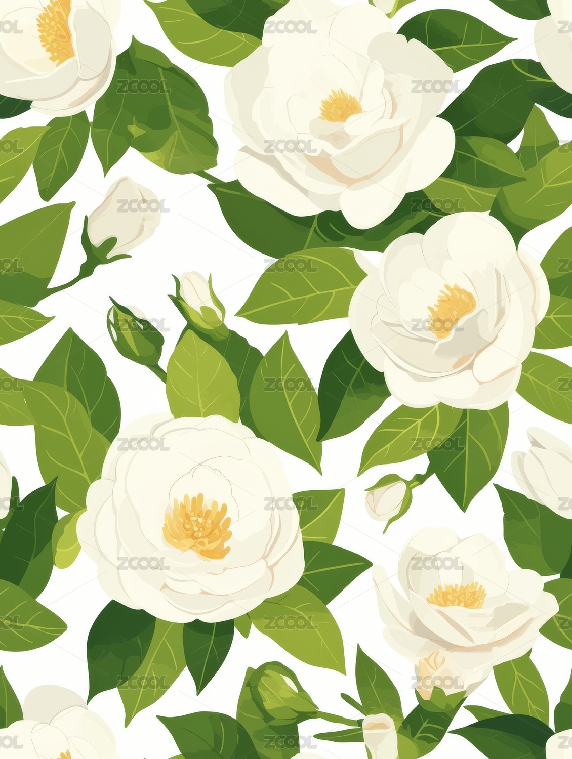 卡通图,图案,栀子花,布料,印花,背景,插画,叶子