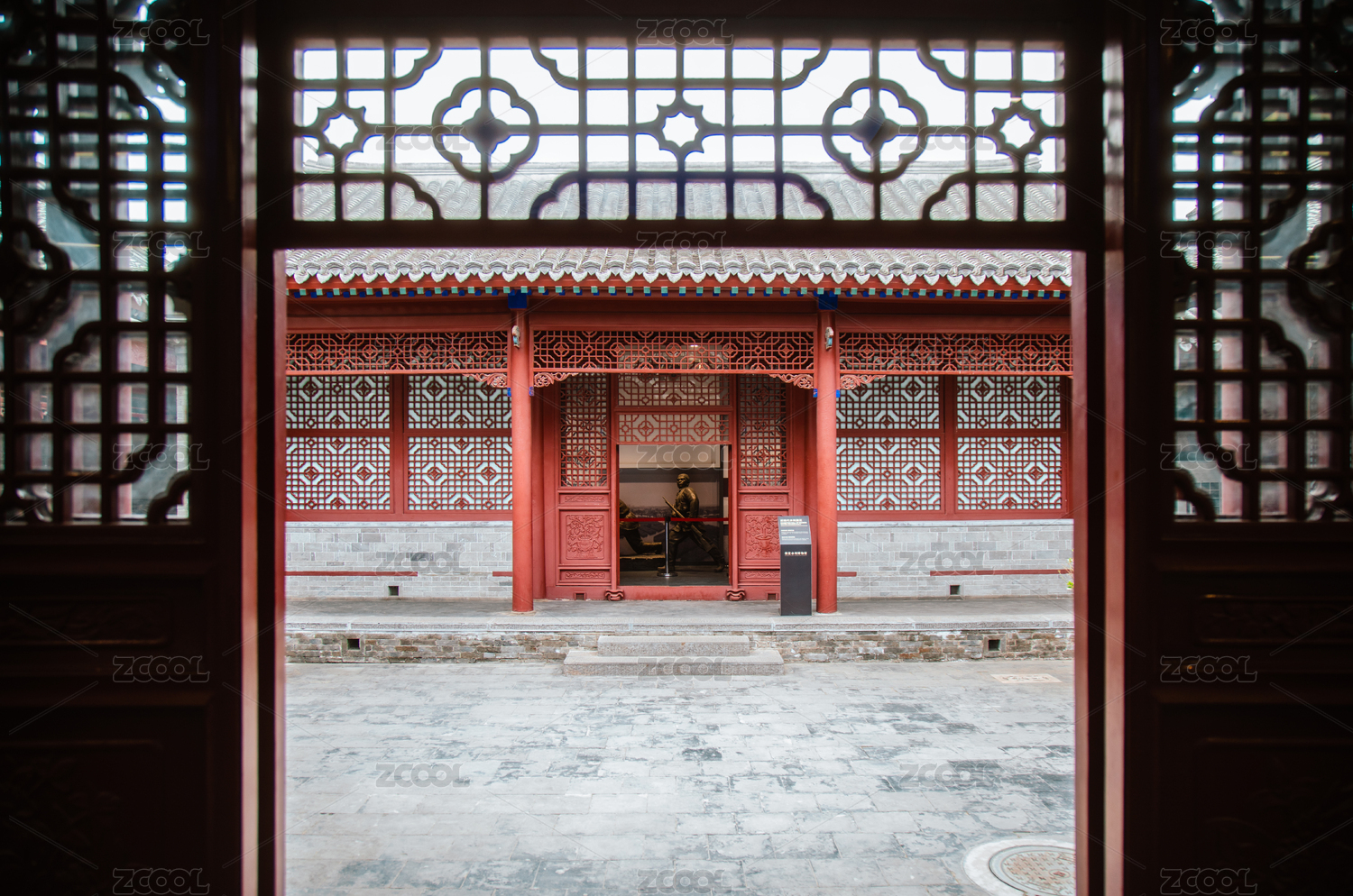 江西省南昌市景点滕王阁中式建筑红色木门局部特写