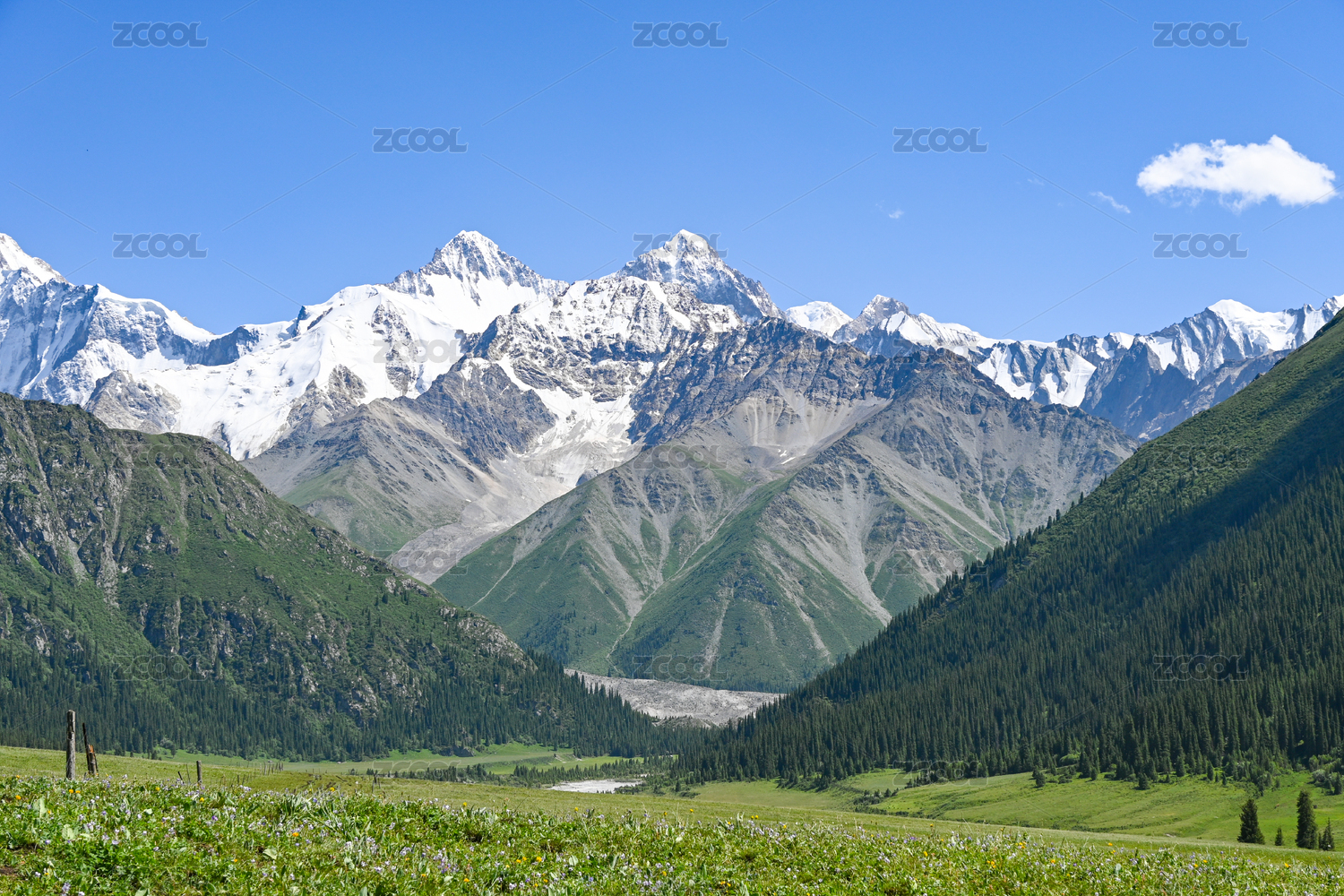 中国新疆伊犁哈萨克自治州昭苏县夏塔古道冰川夏季