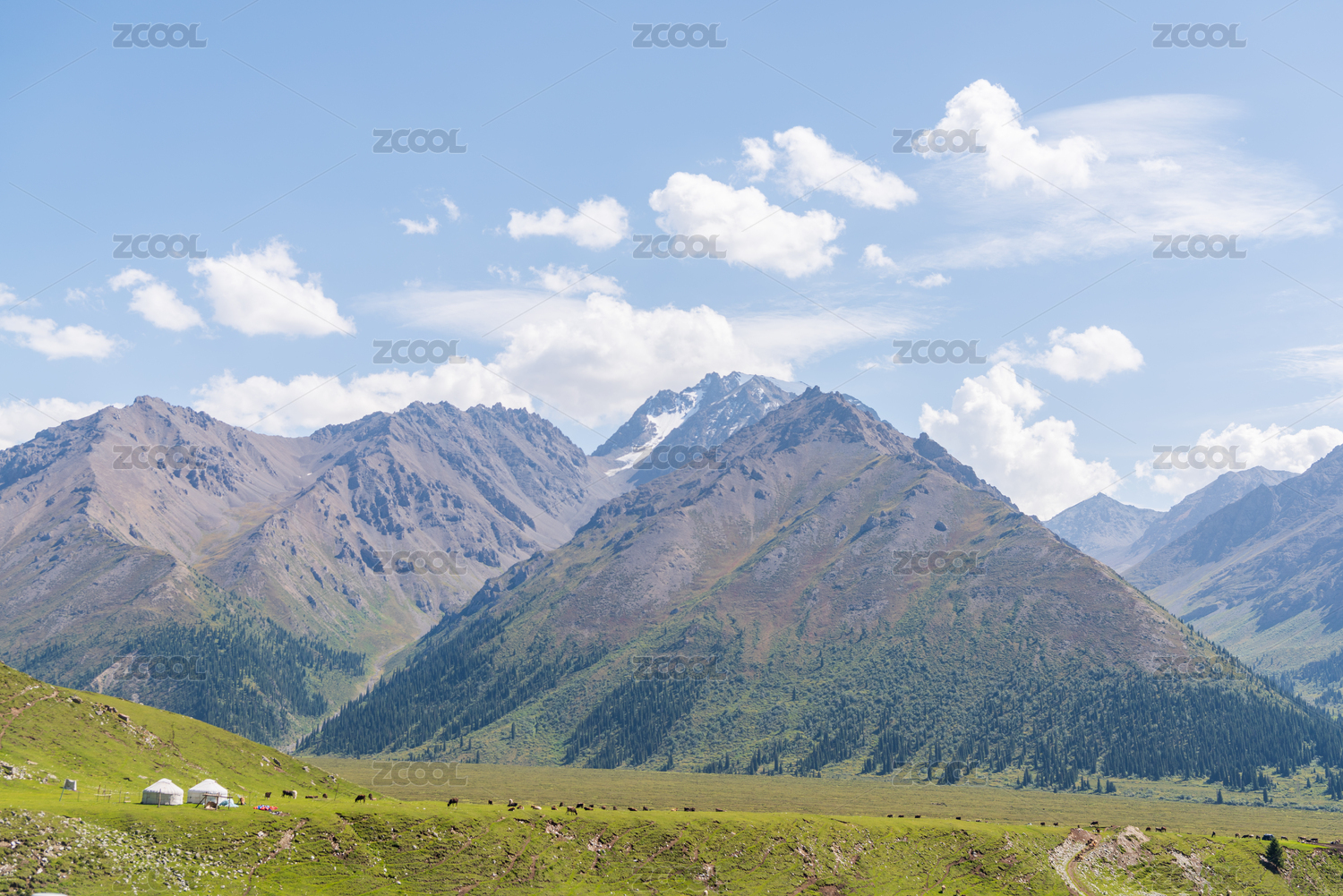 中国新疆伊犁昭苏夏塔草原雪山自然风光