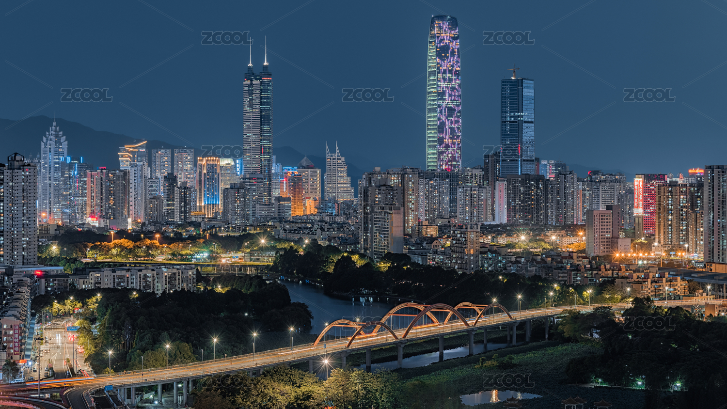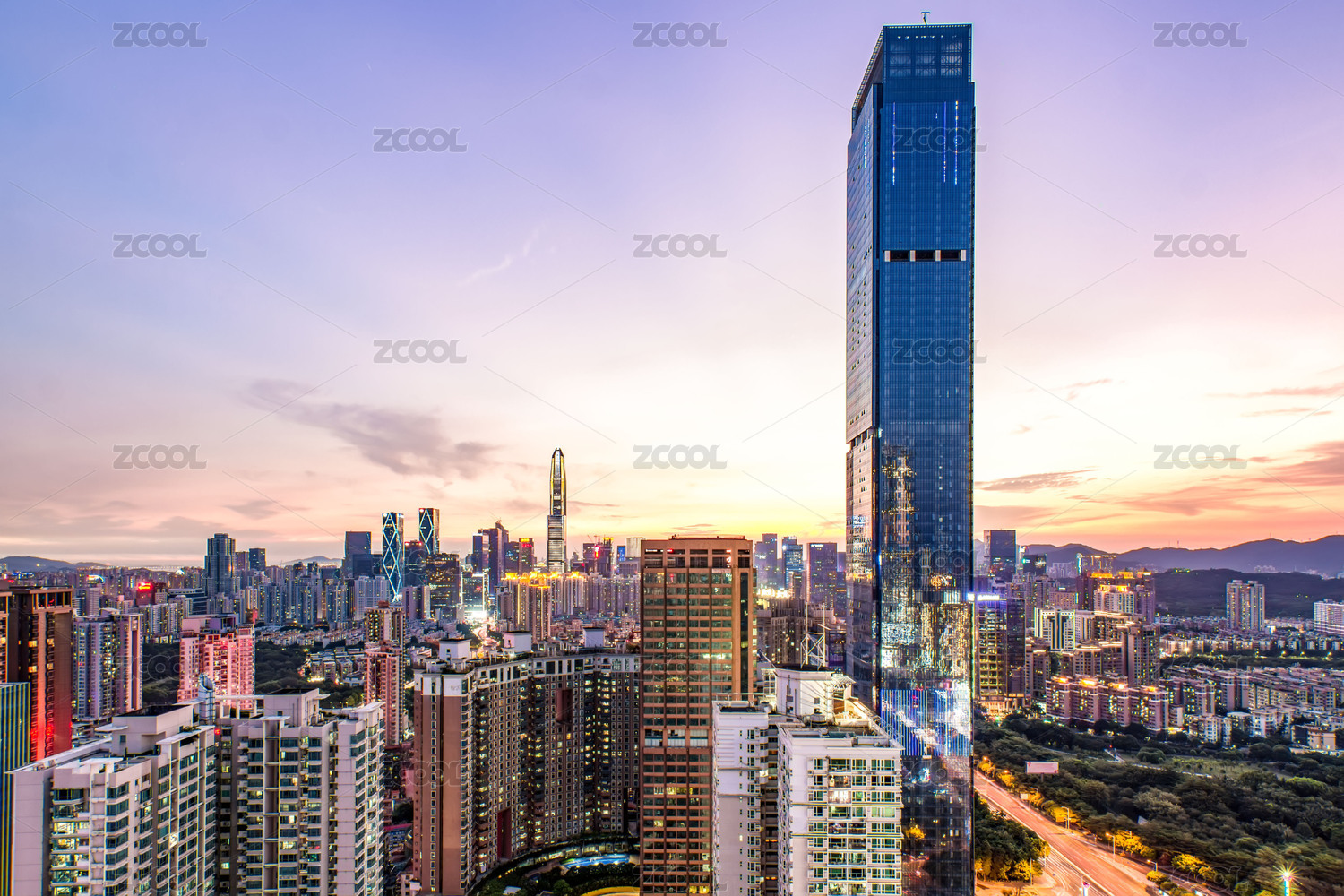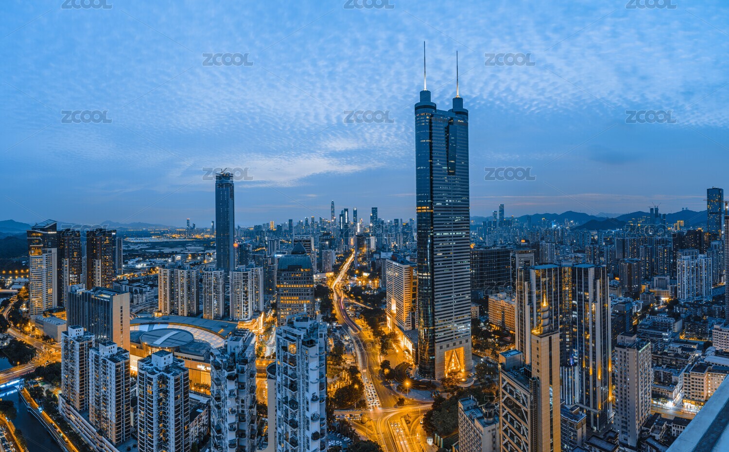 中国深圳市深圳城市风光罗湖片区傍晚时分