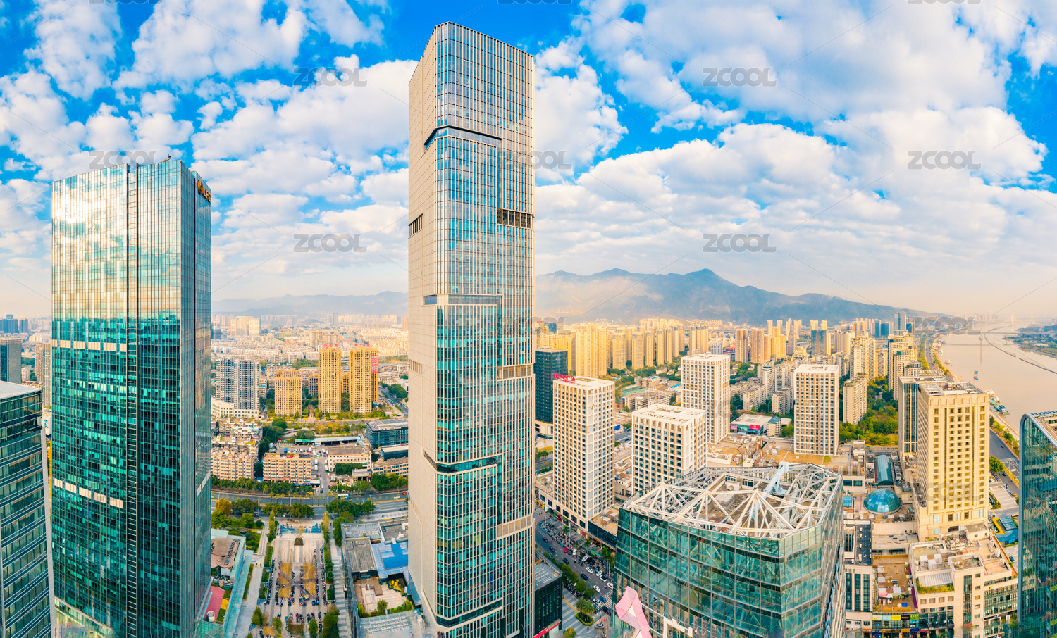 中国福建省福州市江滨大道商业区建筑风光