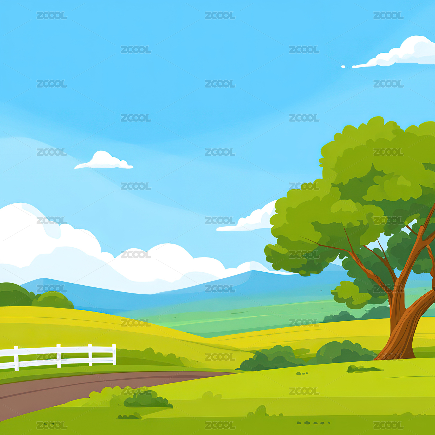 小清新田园户外风光插画
