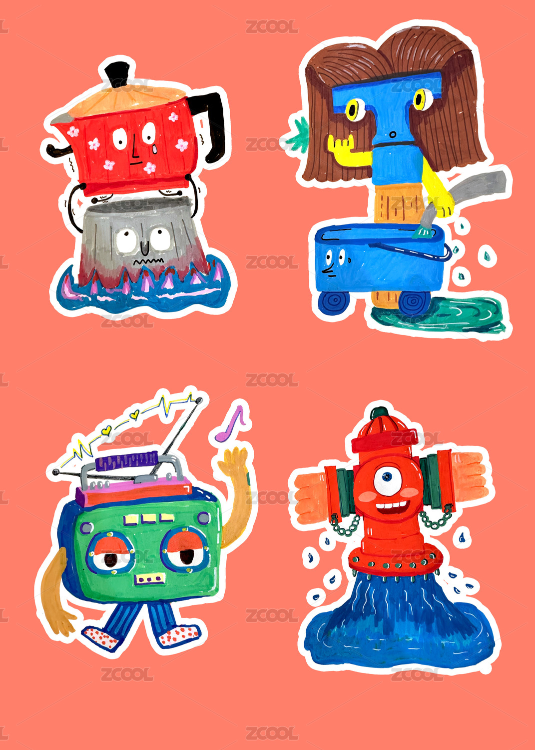 贴纸,文创,花纹,图案,卡通,撞色,人物,生活,有趣