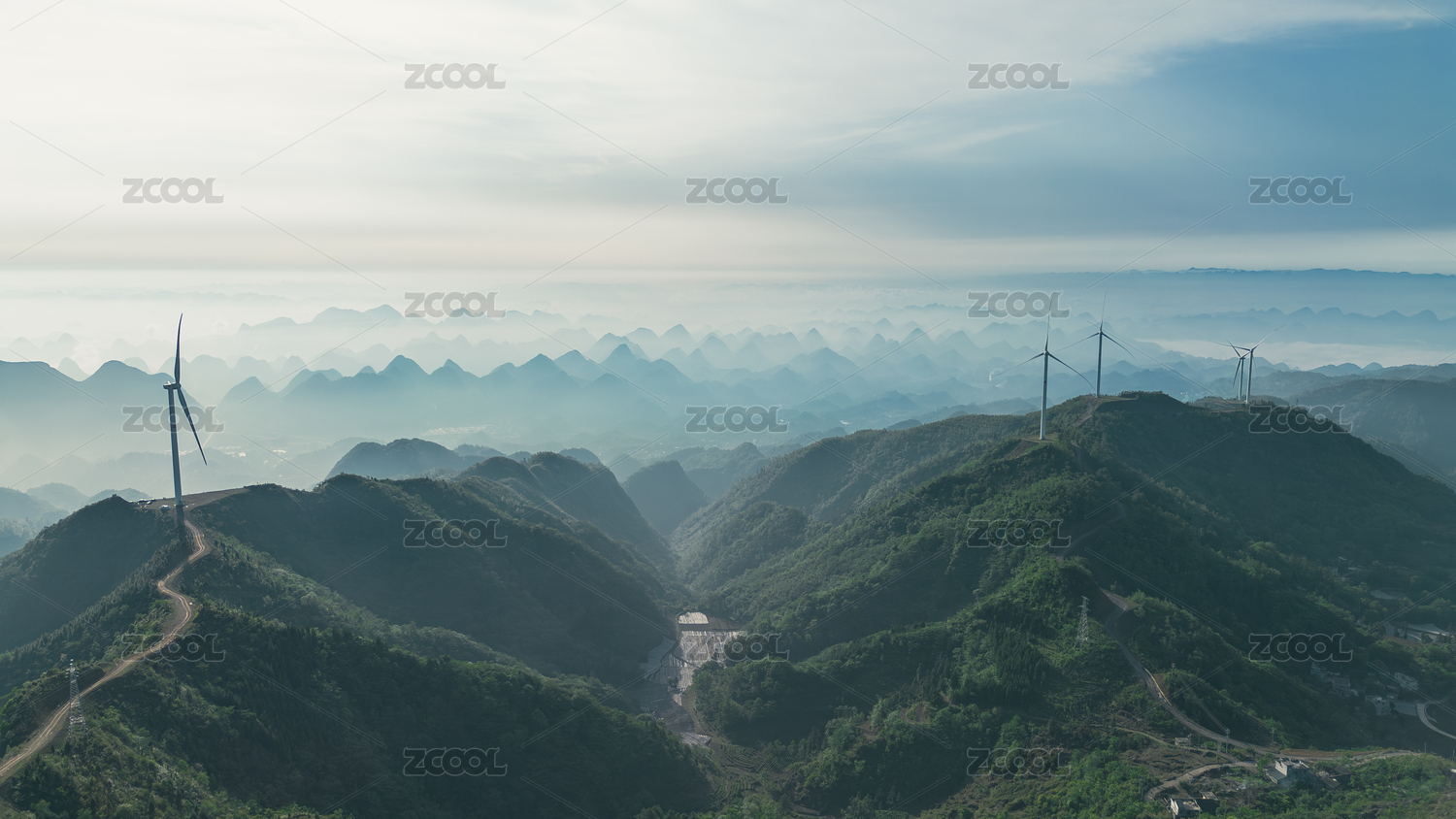 蓝天白云,云,云朵,蓝天,群山,山,风车,天空,竹麻山,兴义市