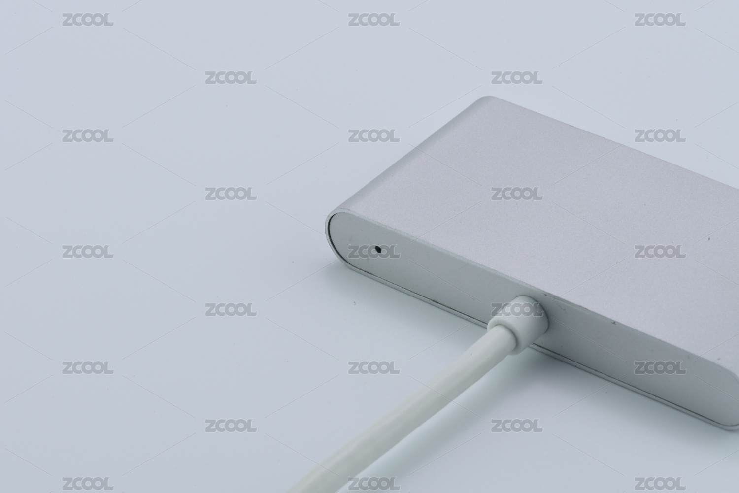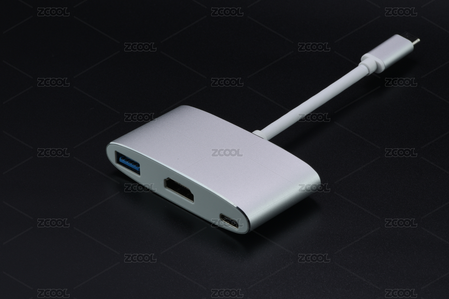 灰底黑色磨砂金属TypeC转接头HUB接口特写