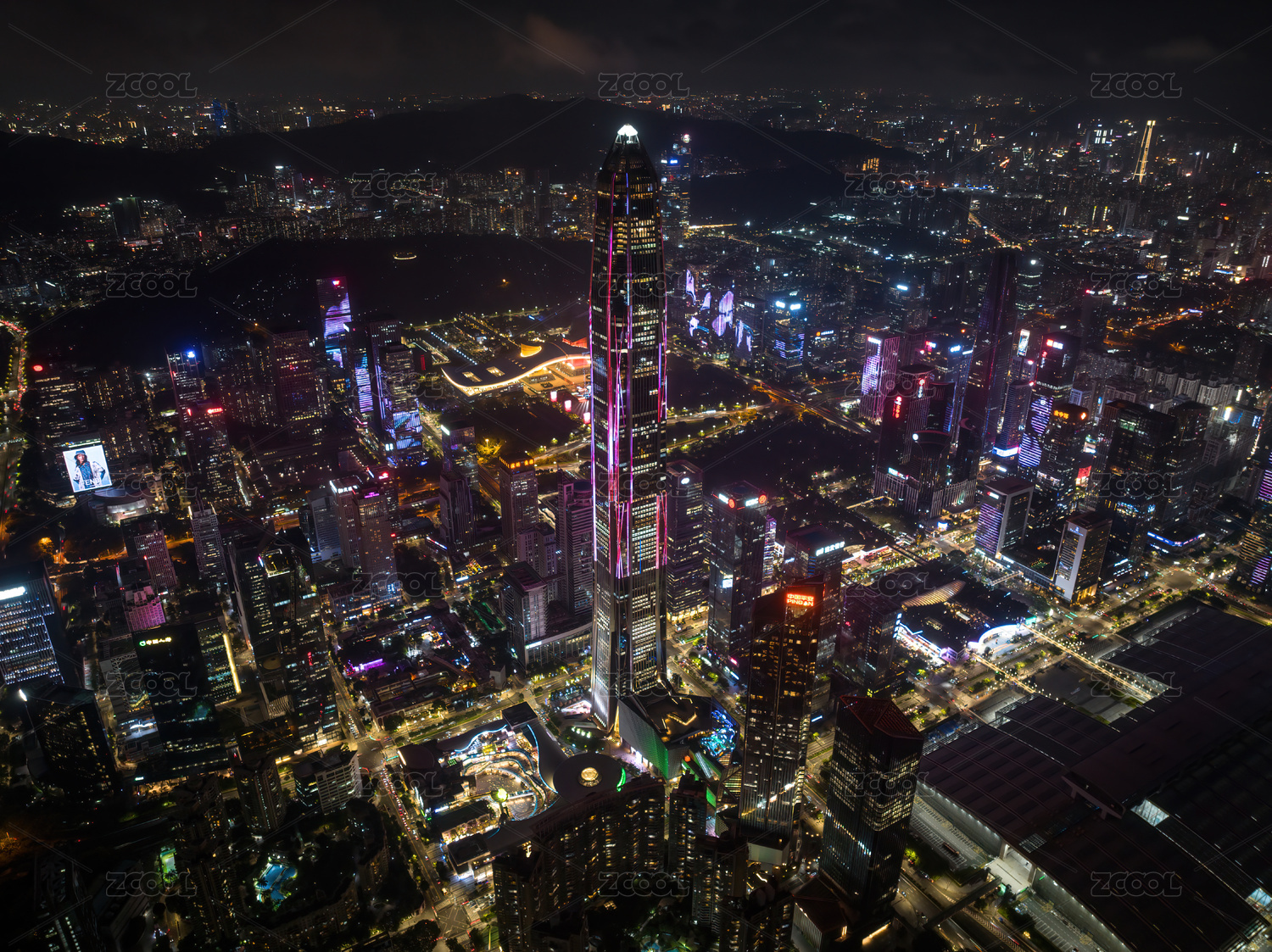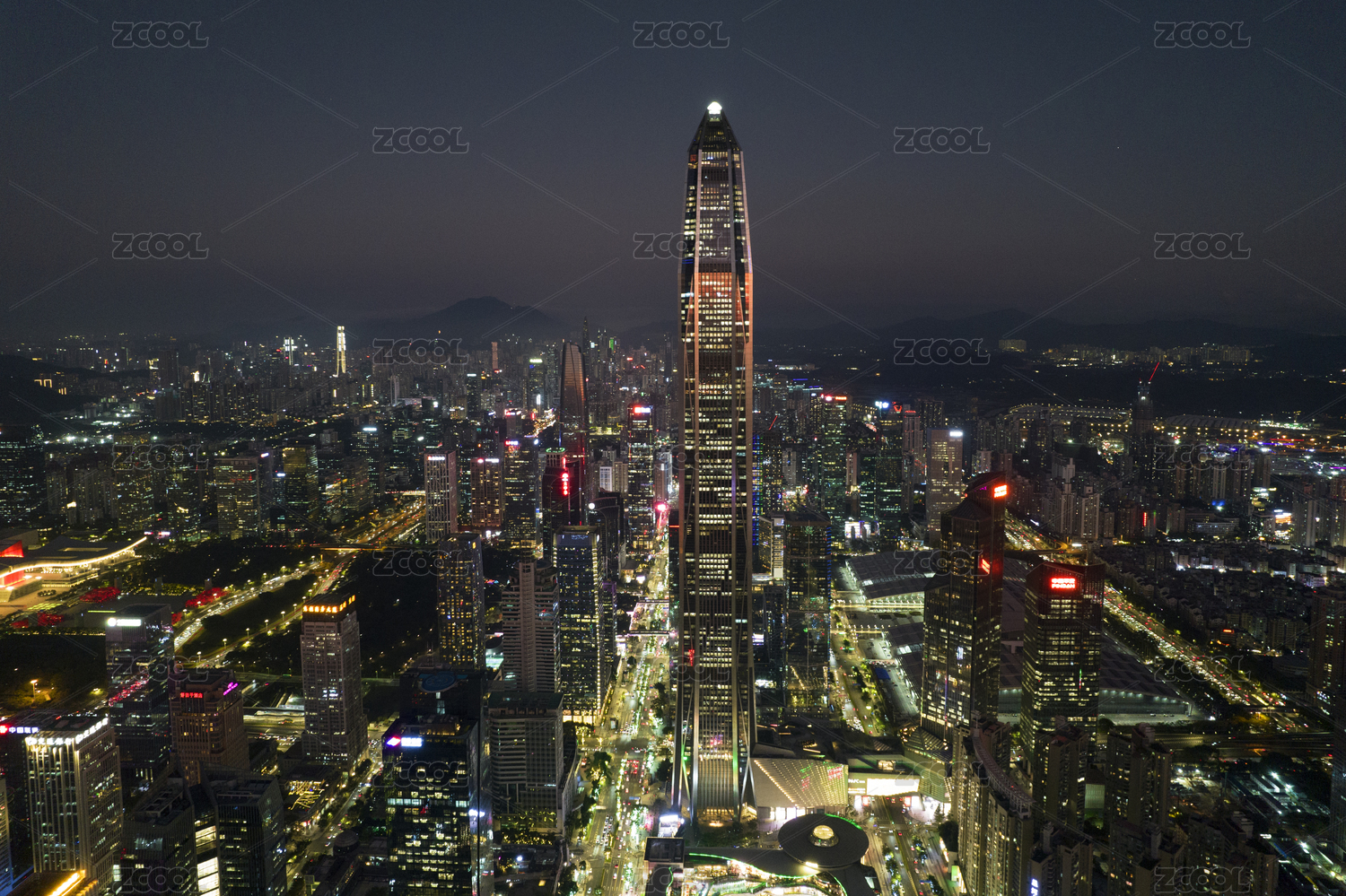 深圳,福田,CBD,平安大厦,晴天,航拍,大湾区,城市,灯光,夜景