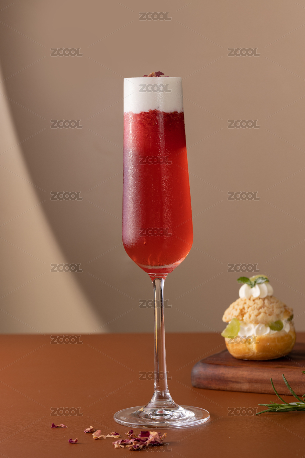 高玻璃杯里红色饮品鸡尾酒饮料冷饮冰饮
