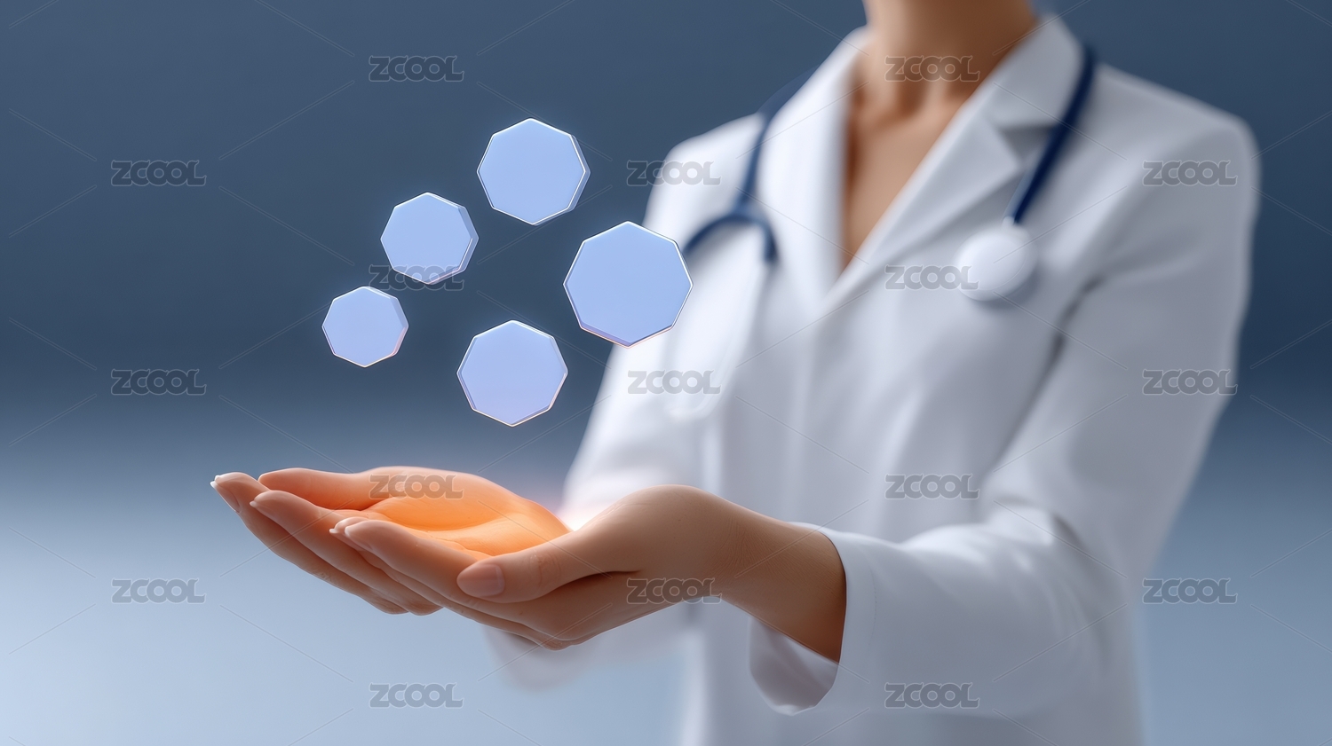 蓝色实景里的美丽医生,医疗技术智能网络概念图
