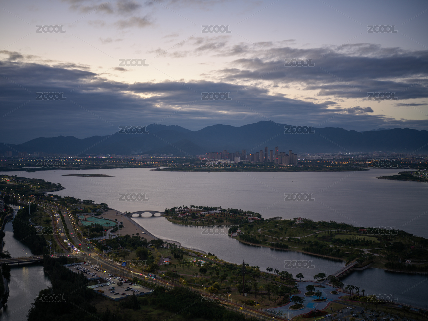 厦门马銮湾城市黄昏全景