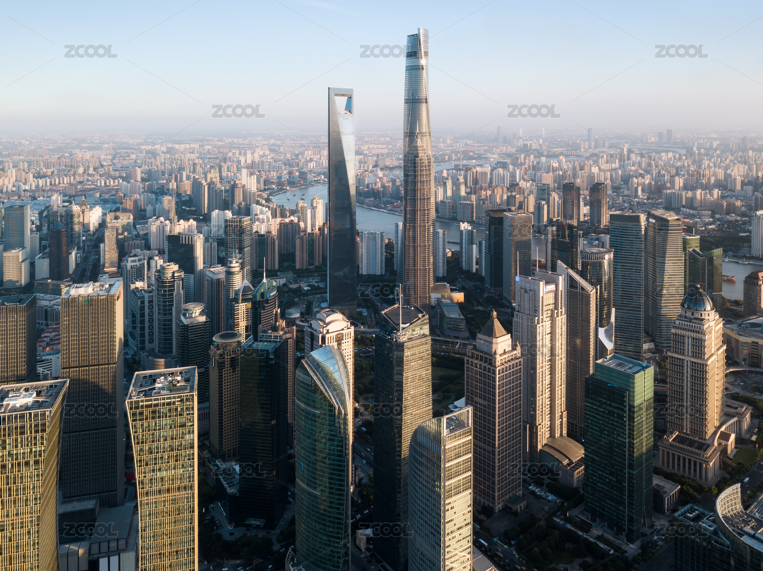 中国上海浦东陆家嘴金融城航拍建筑风光