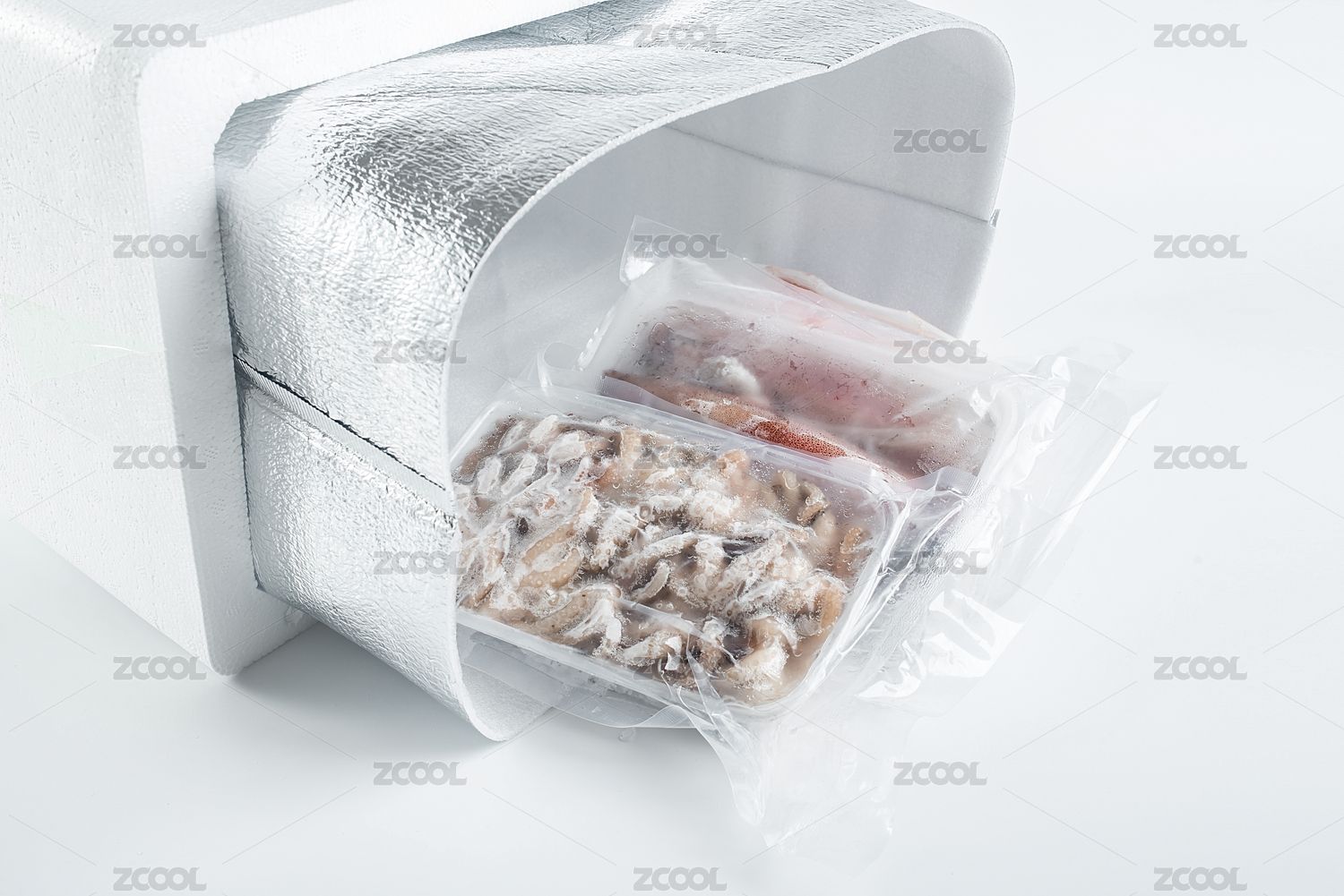 泡沫箱铝膜袋装着的新鲜海鲜美食