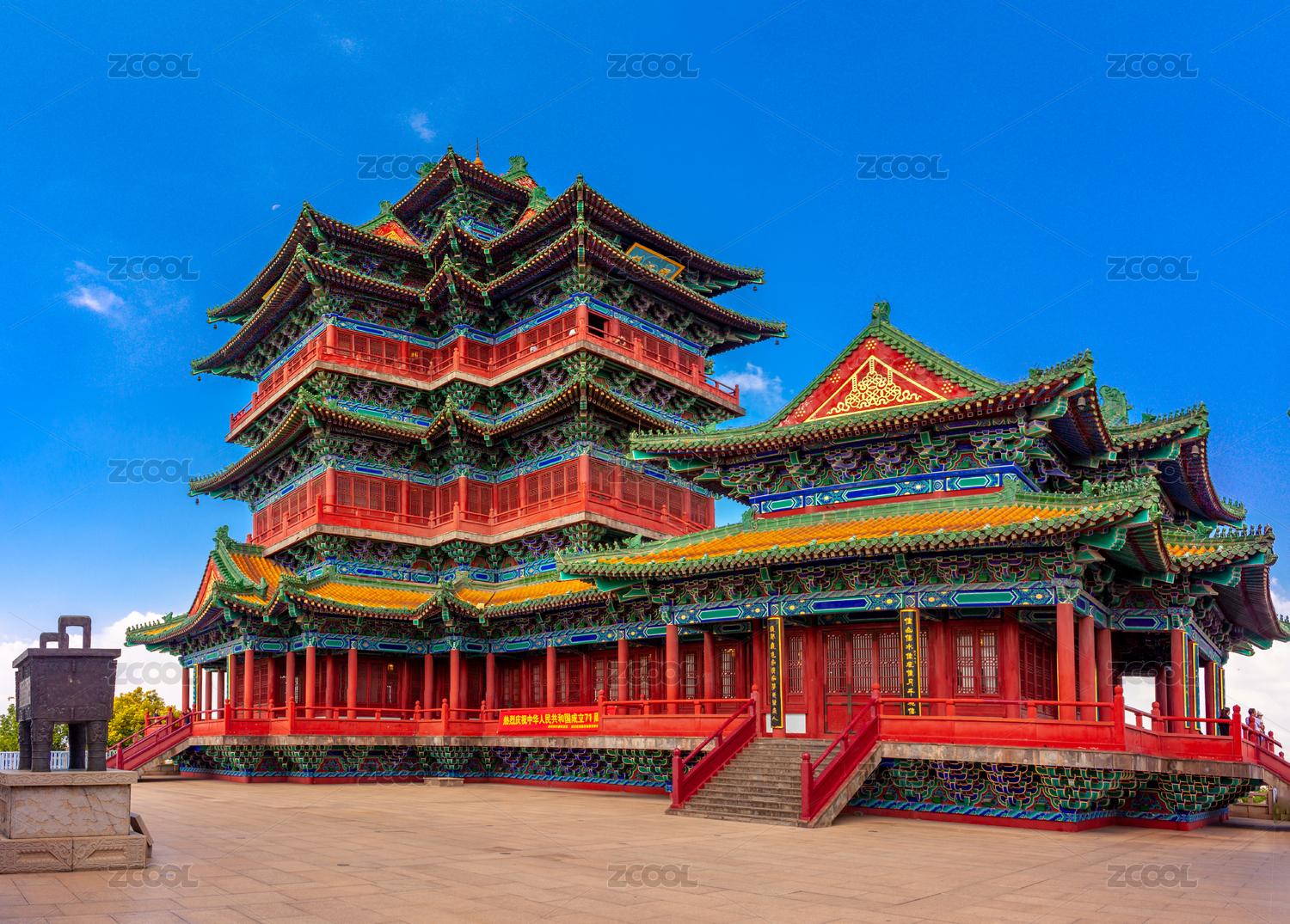 北京西山门头沟定都阁亭台楼阁建筑蓝天