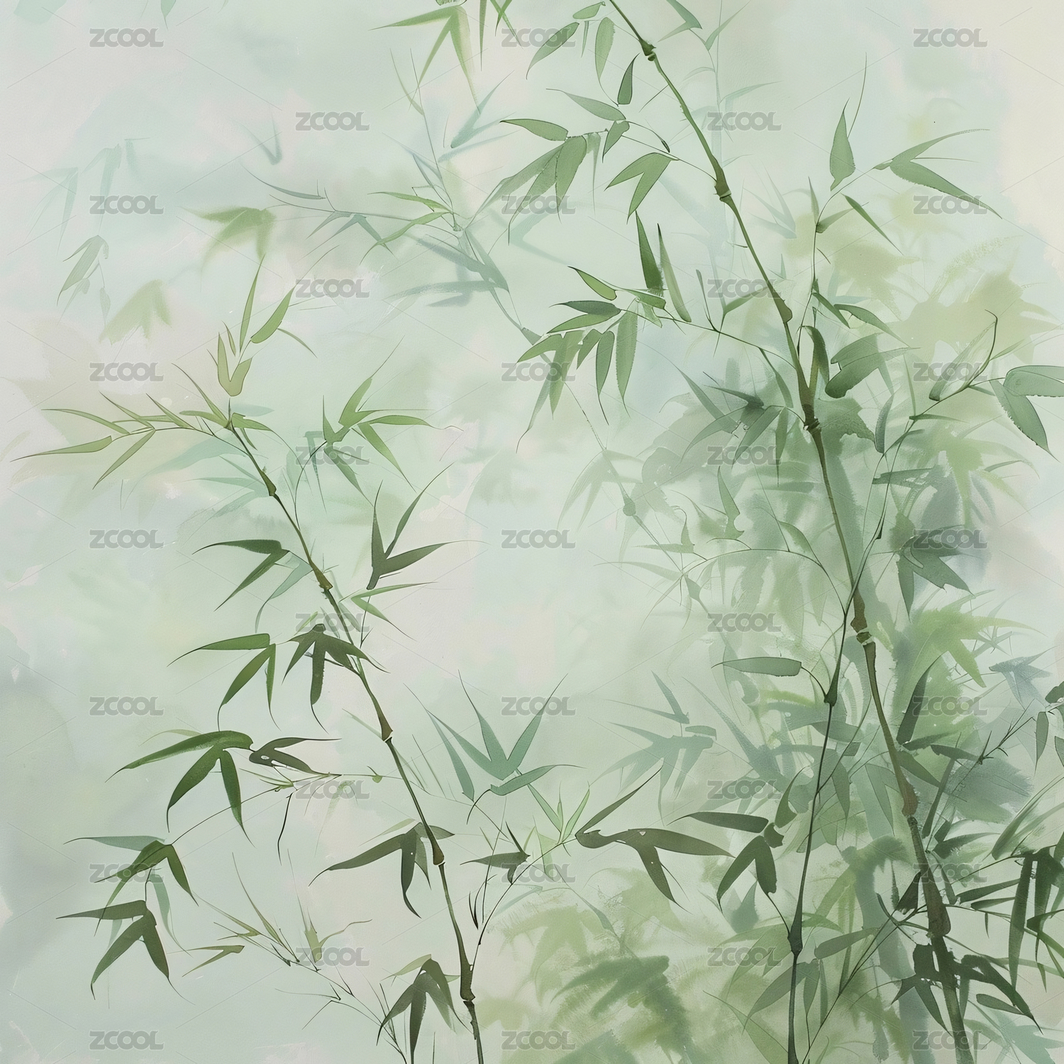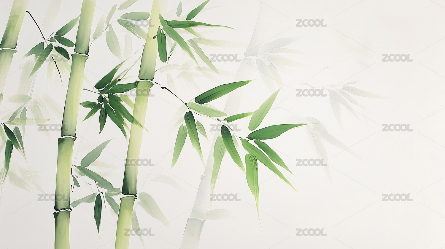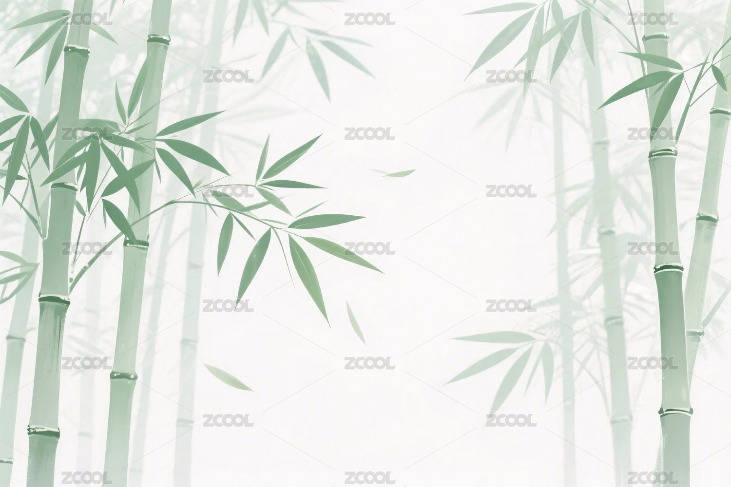 竹子水墨风中式绘画场景