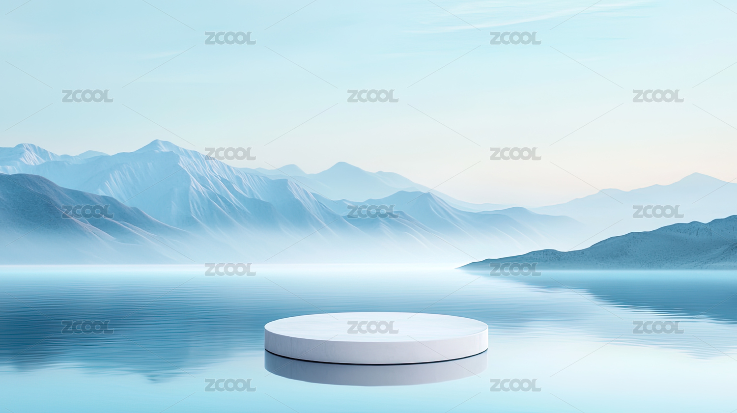 宁静灰色水面上的展示台