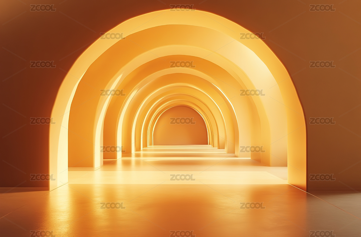 金色发光通道走廊建筑空间背景