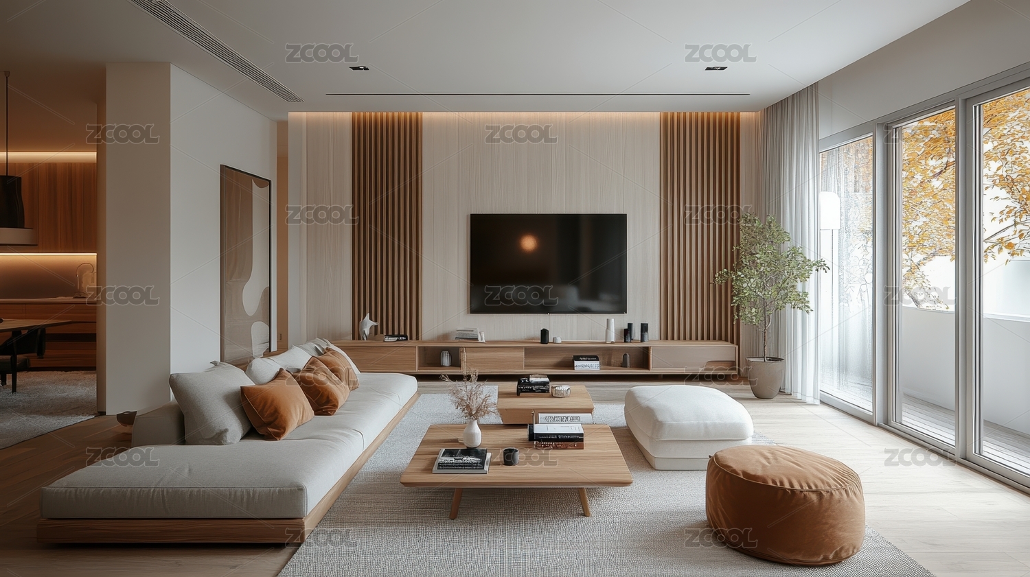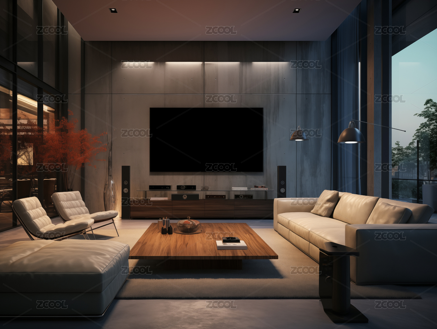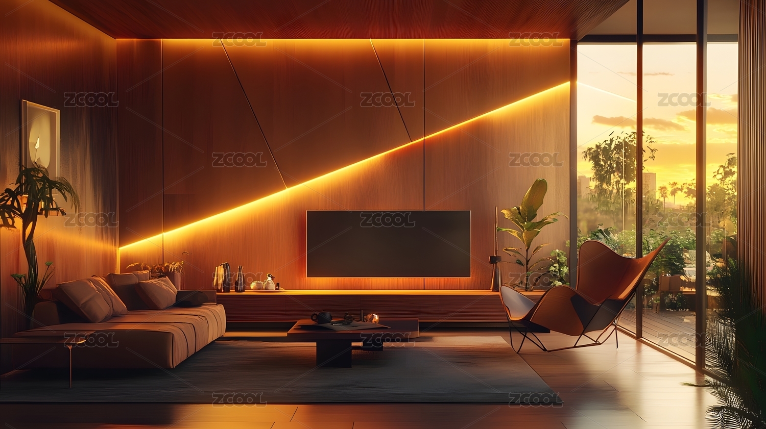 沙发,电视,咖啡桌,灯光,装饰,枕头,地毯,植物,家具,设计