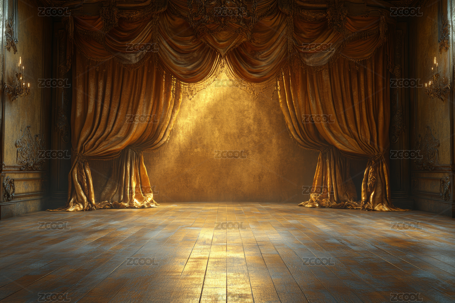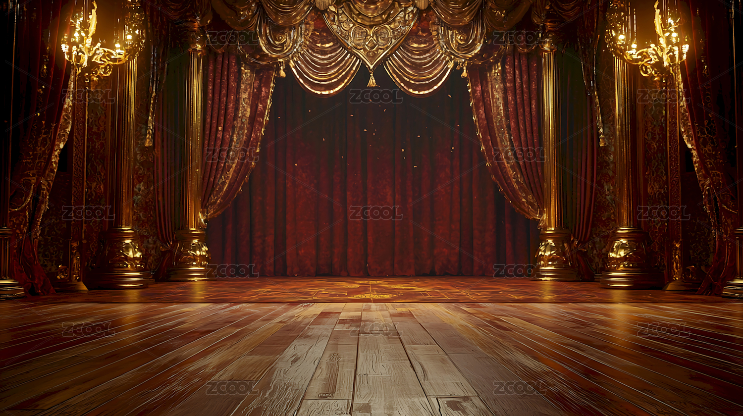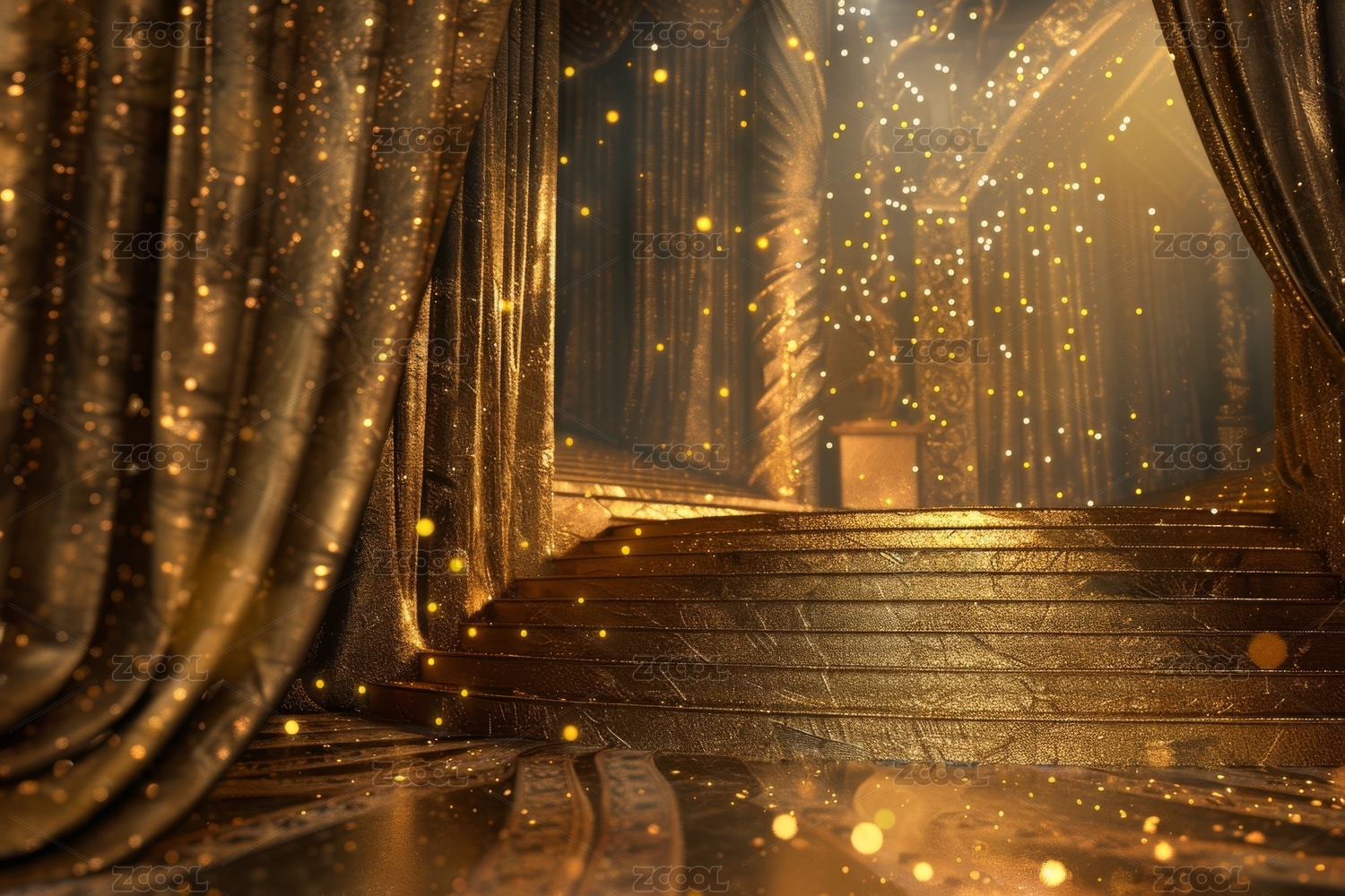 剧院,舞台,灯光,金色,帷幕,楼梯,台阶,光线,明亮,高雅
