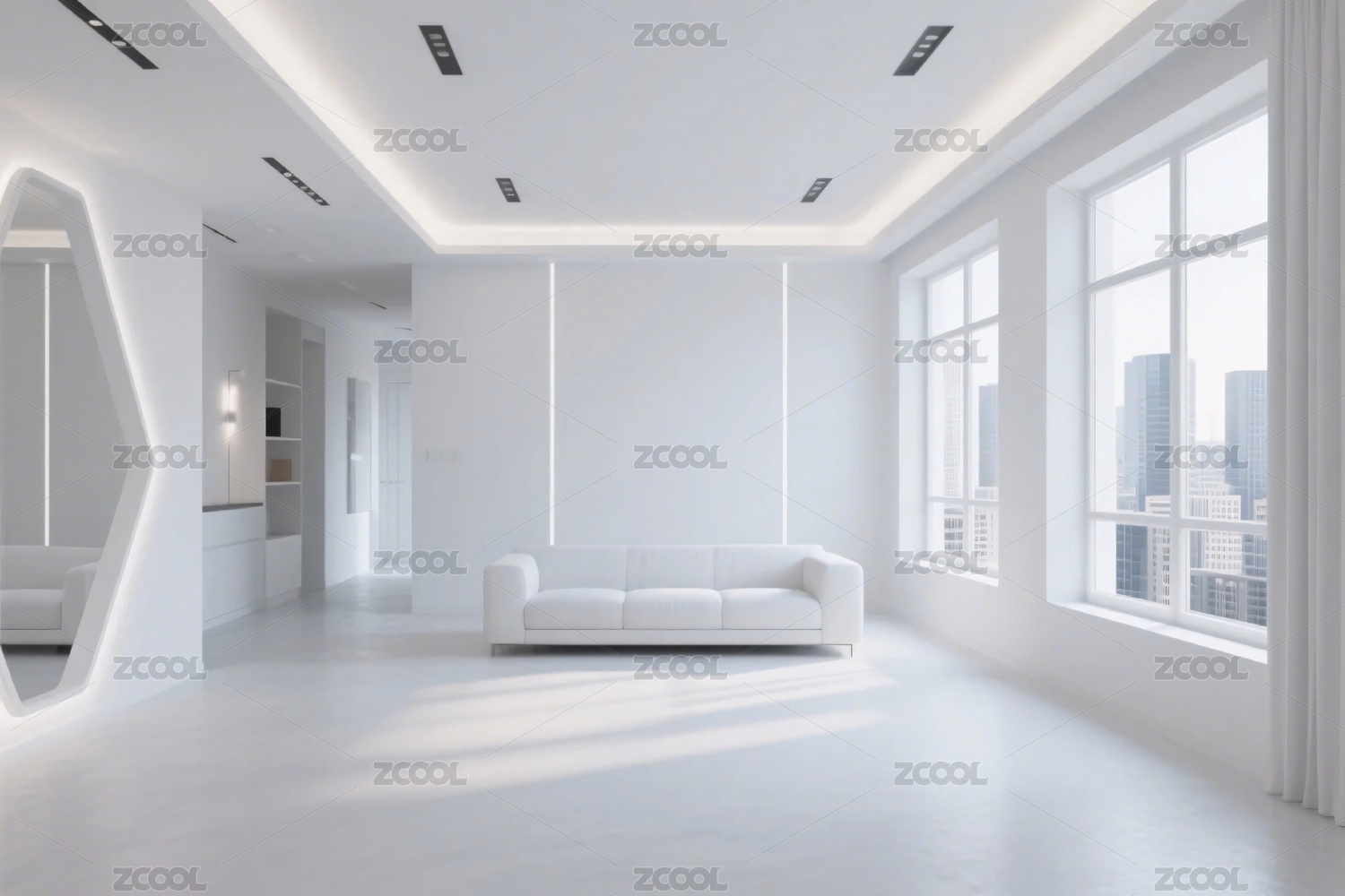 白色,简约,现代,卧室,床,被子,枕头,地毯,吊灯,壁挂