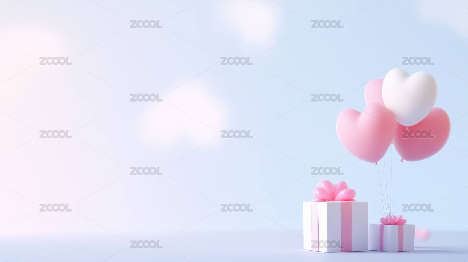 粉色,心形,气球,礼物,礼盒,节日,插画,三维图形,设计,生日
