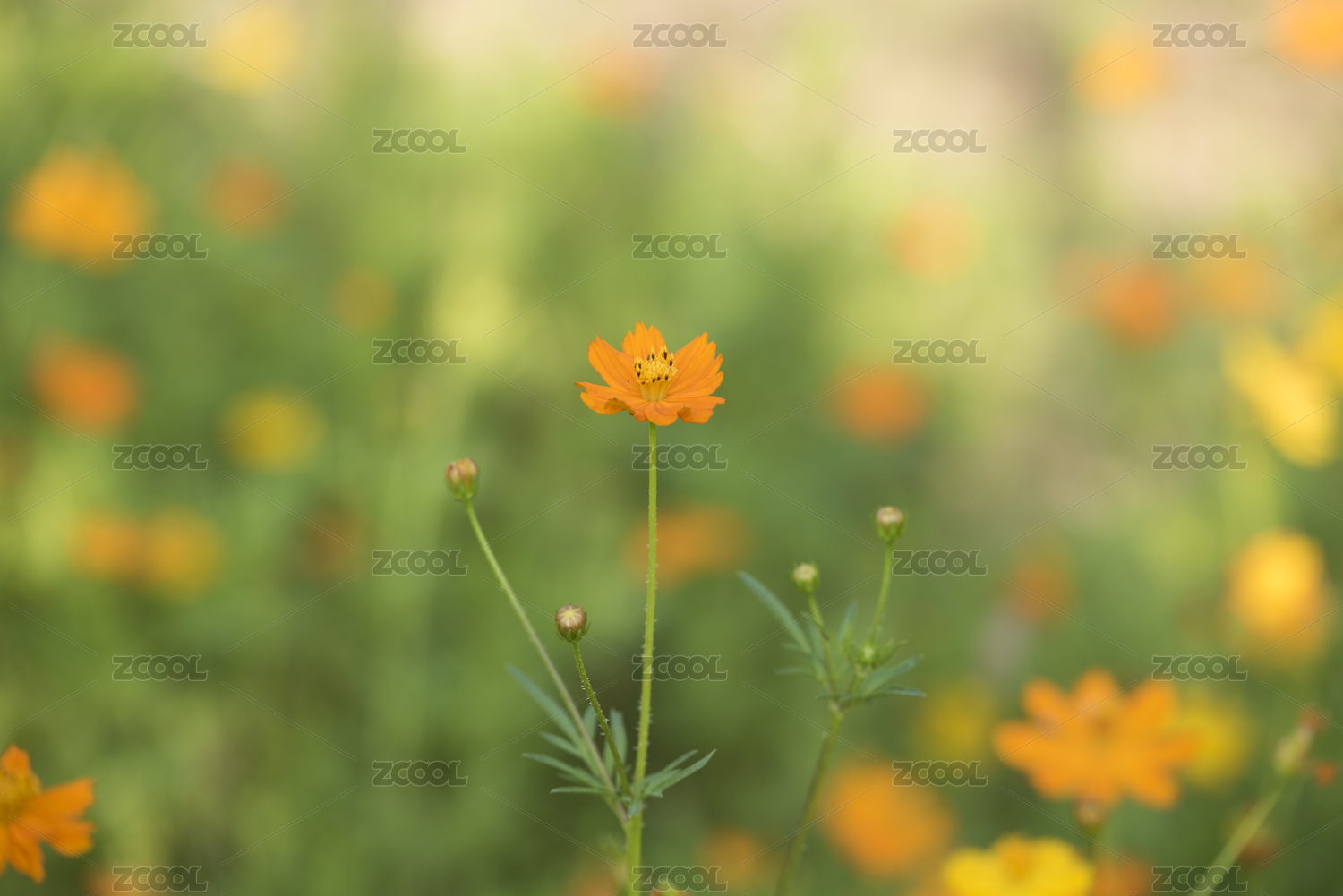 广东广州海珠湖公园绿色背景下的双色硫华菊