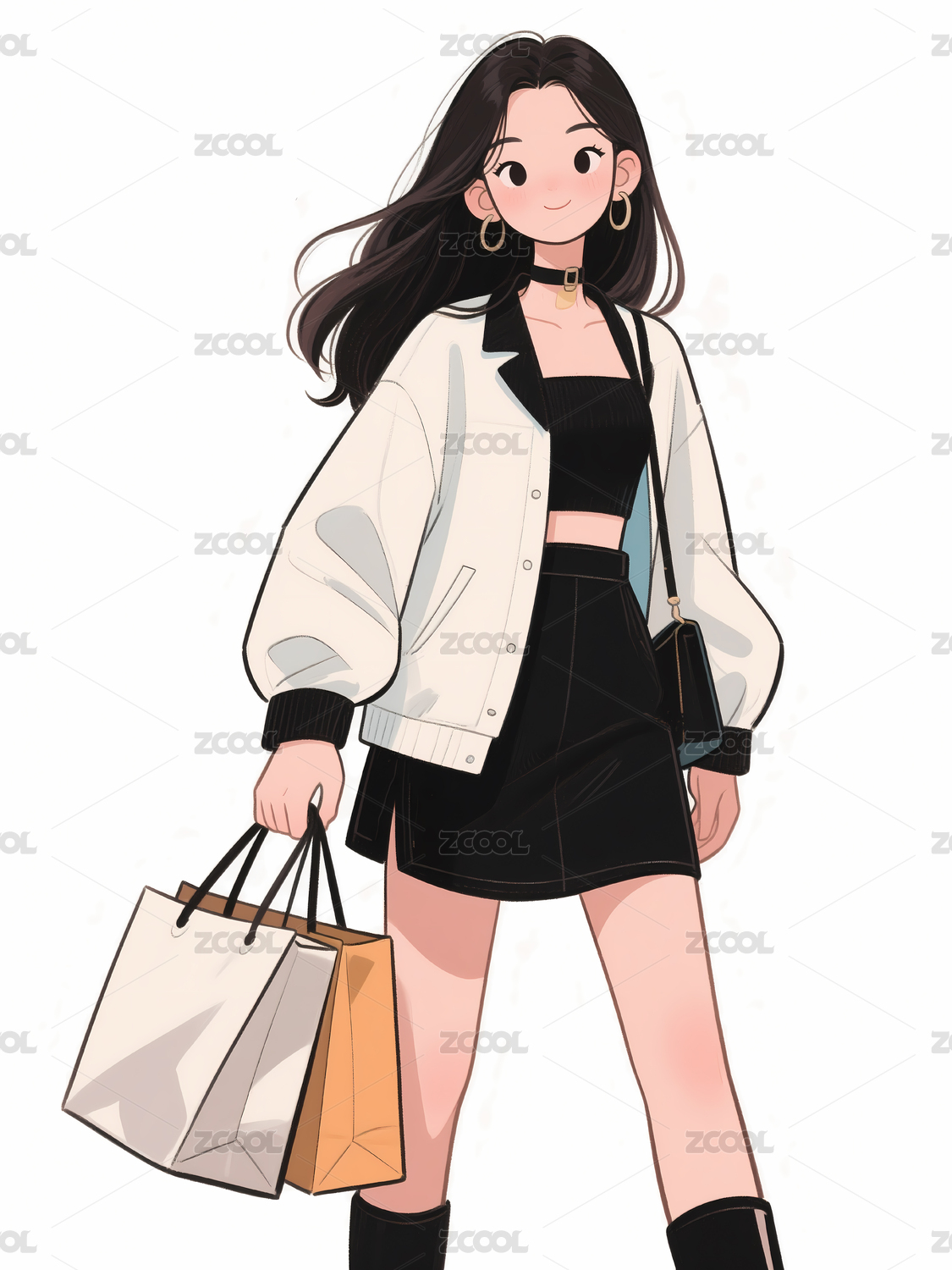 站,美女,全身像,制服,女孩,购物,逛街,喝咖啡,咖啡,开心