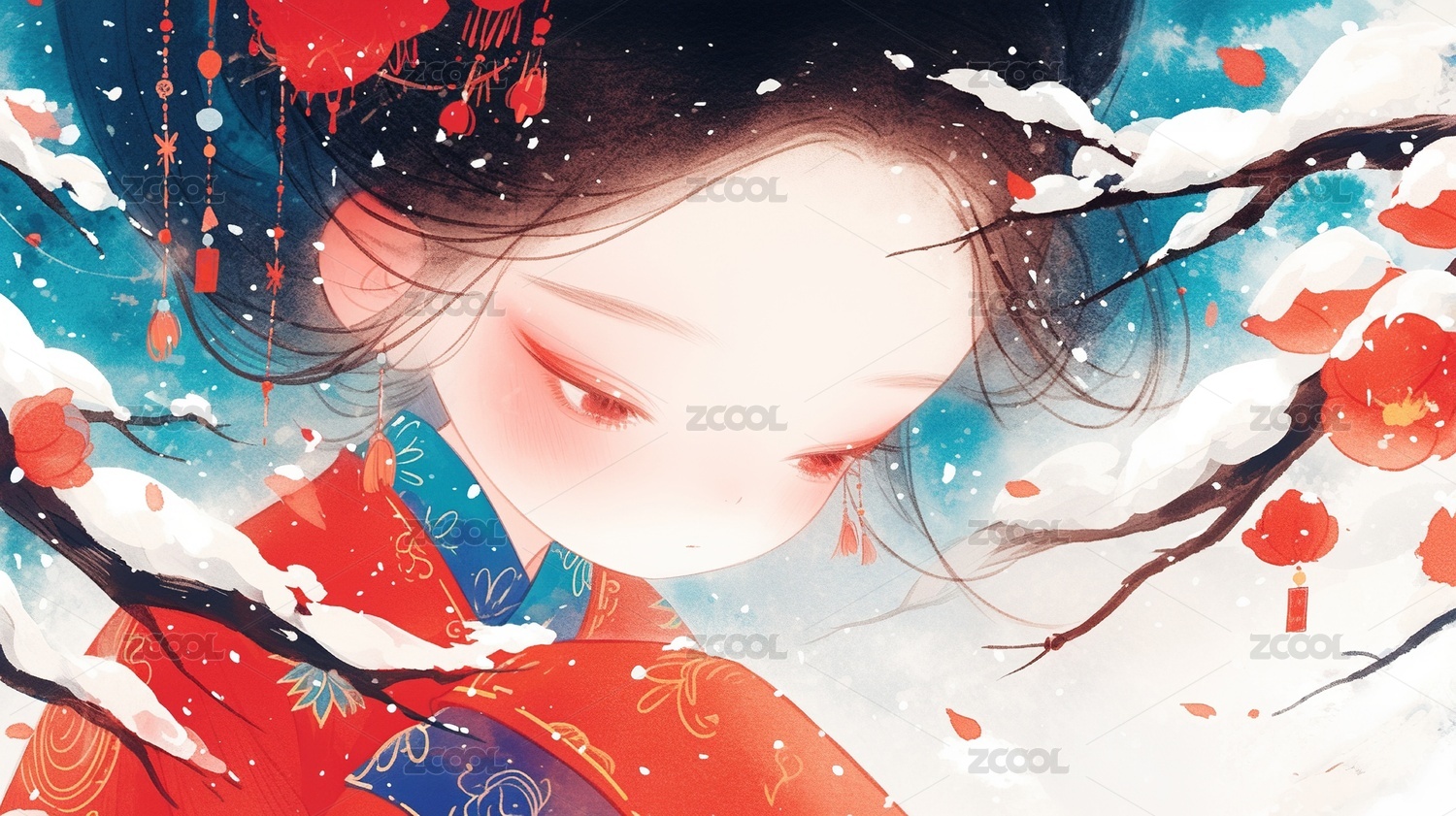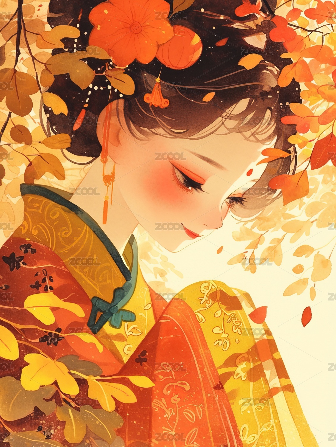 插画,女人,美女,国风,传统服装,历史服装,可爱风,自然美,肖像,中国文化