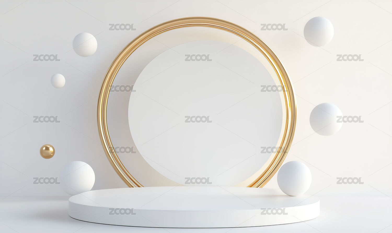 简约白色圆形舞台与悬浮球体
