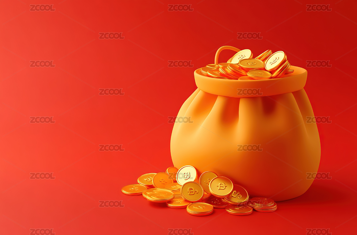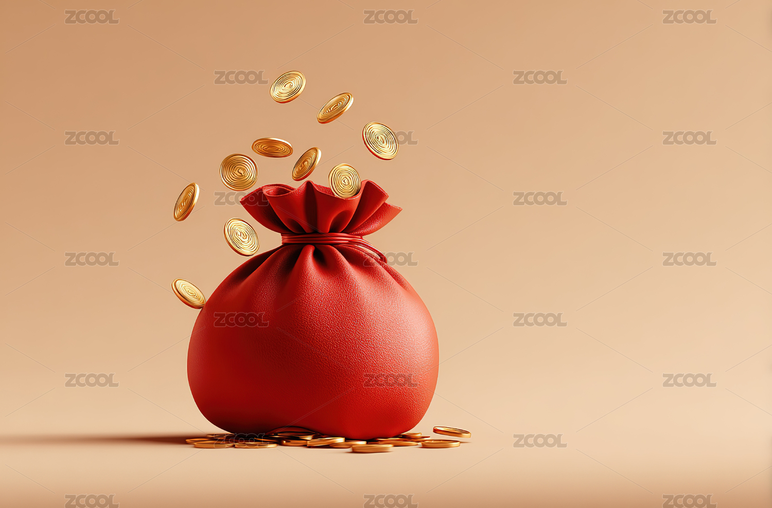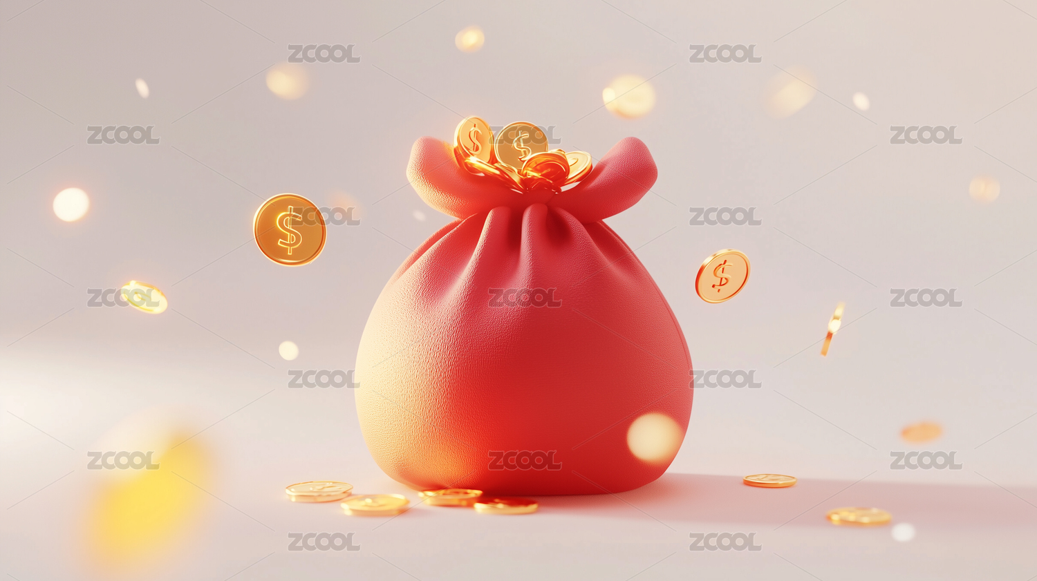 新年喜庆红色3D锦囊福袋聚宝袋和元宝