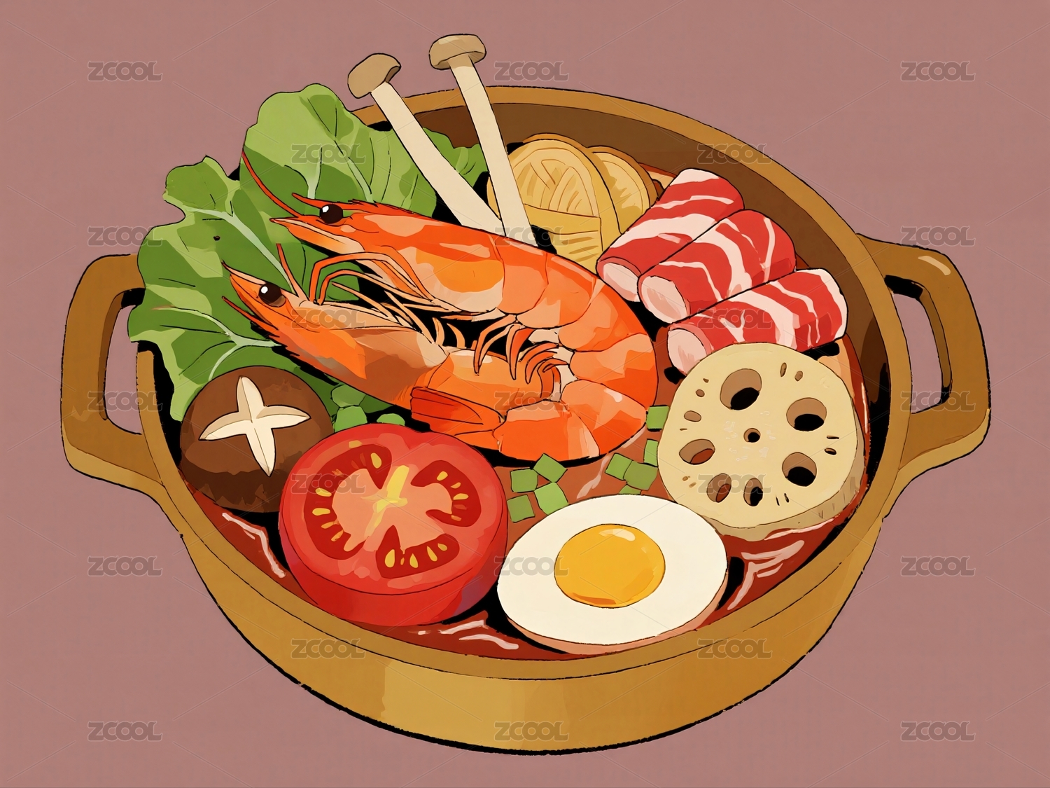 好吃的海鲜虾花甲香菇青菜拉面火锅