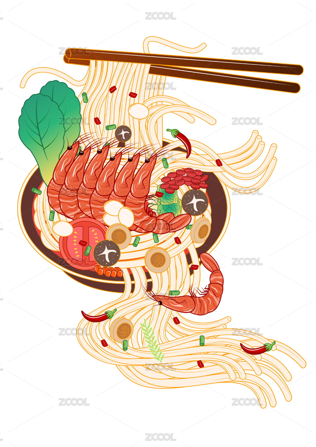 虾,海鲜,青菜,柠檬,香菇,花甲,扇贝,香茅,拉面,面条