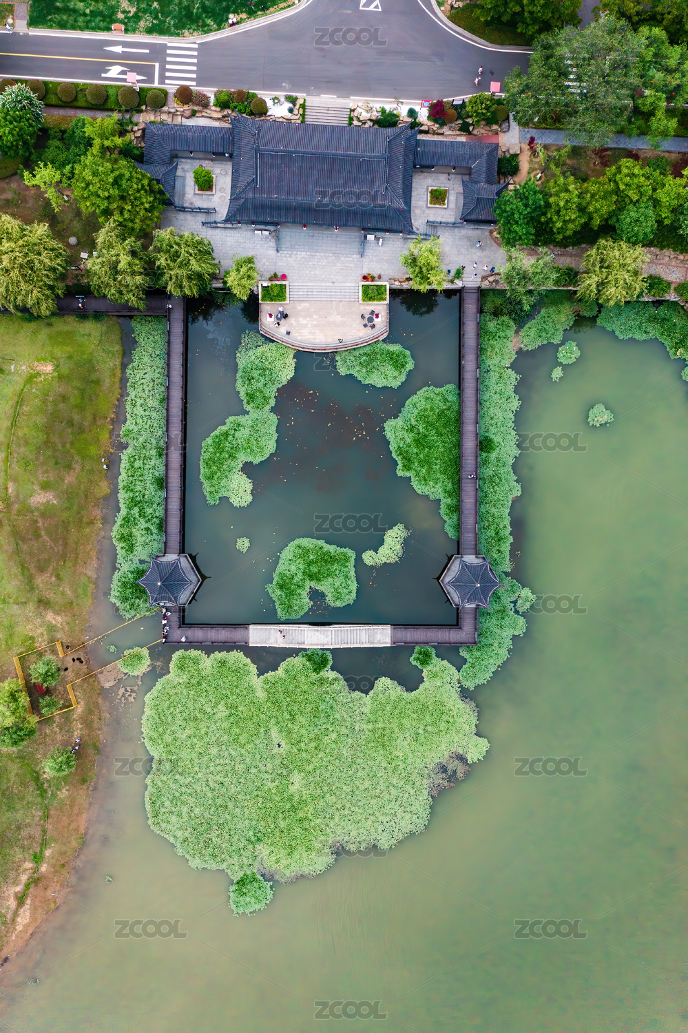 湖北武汉金银湖国家城市湿地公园局部俯拍