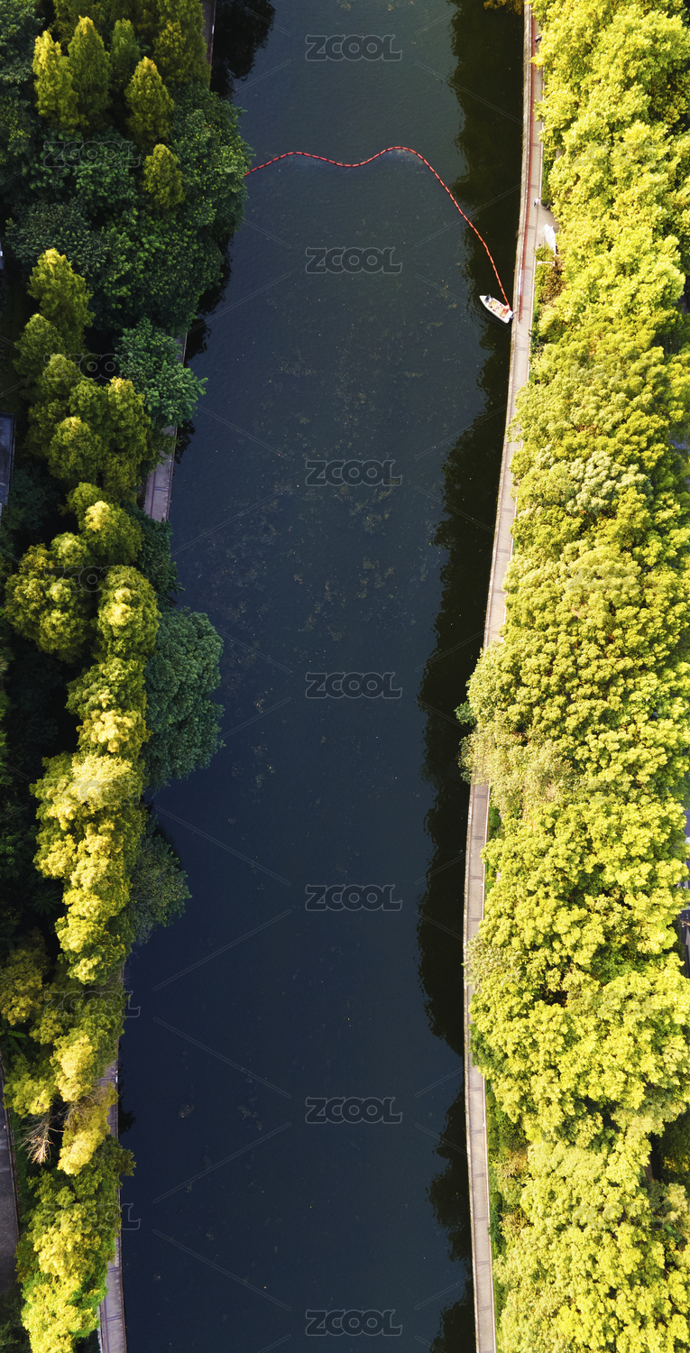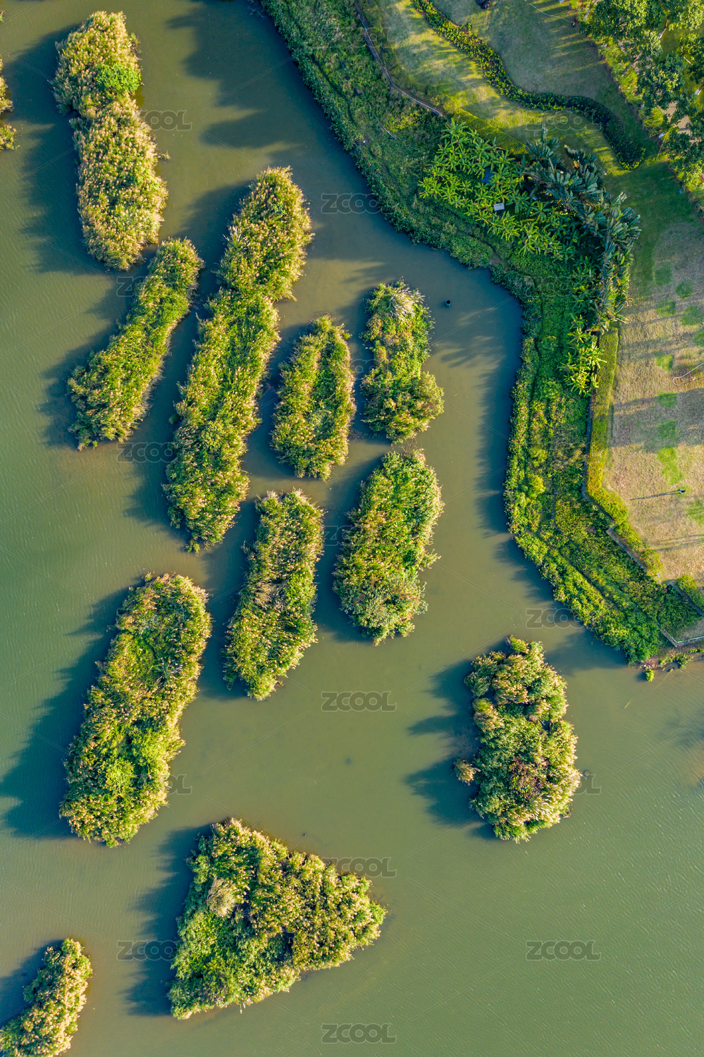 航拍河南平顶山白鹭洲国家城市湿地公园绿意