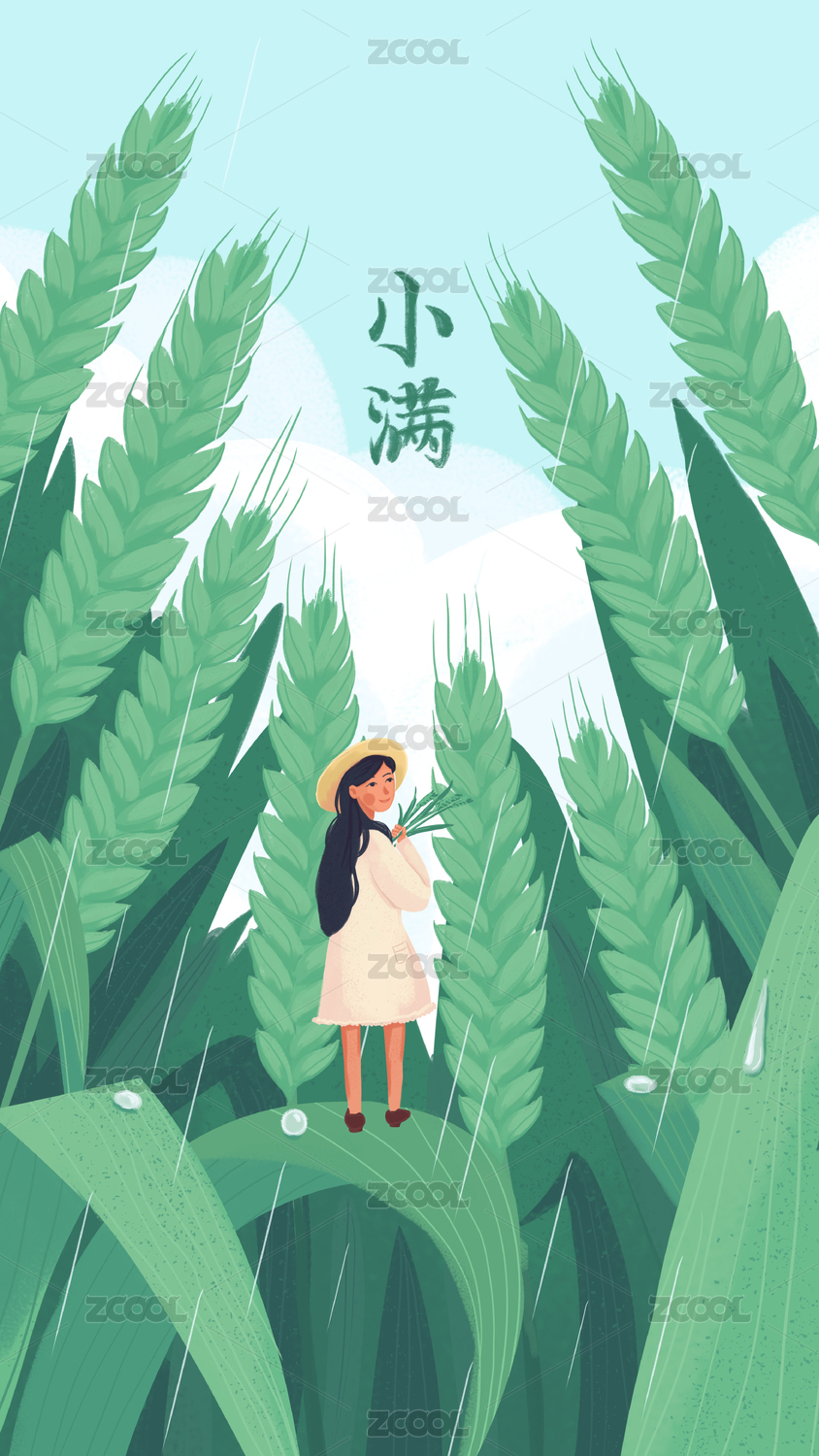 小满节气女孩抱水果夏天一篮子杨梅成熟插画