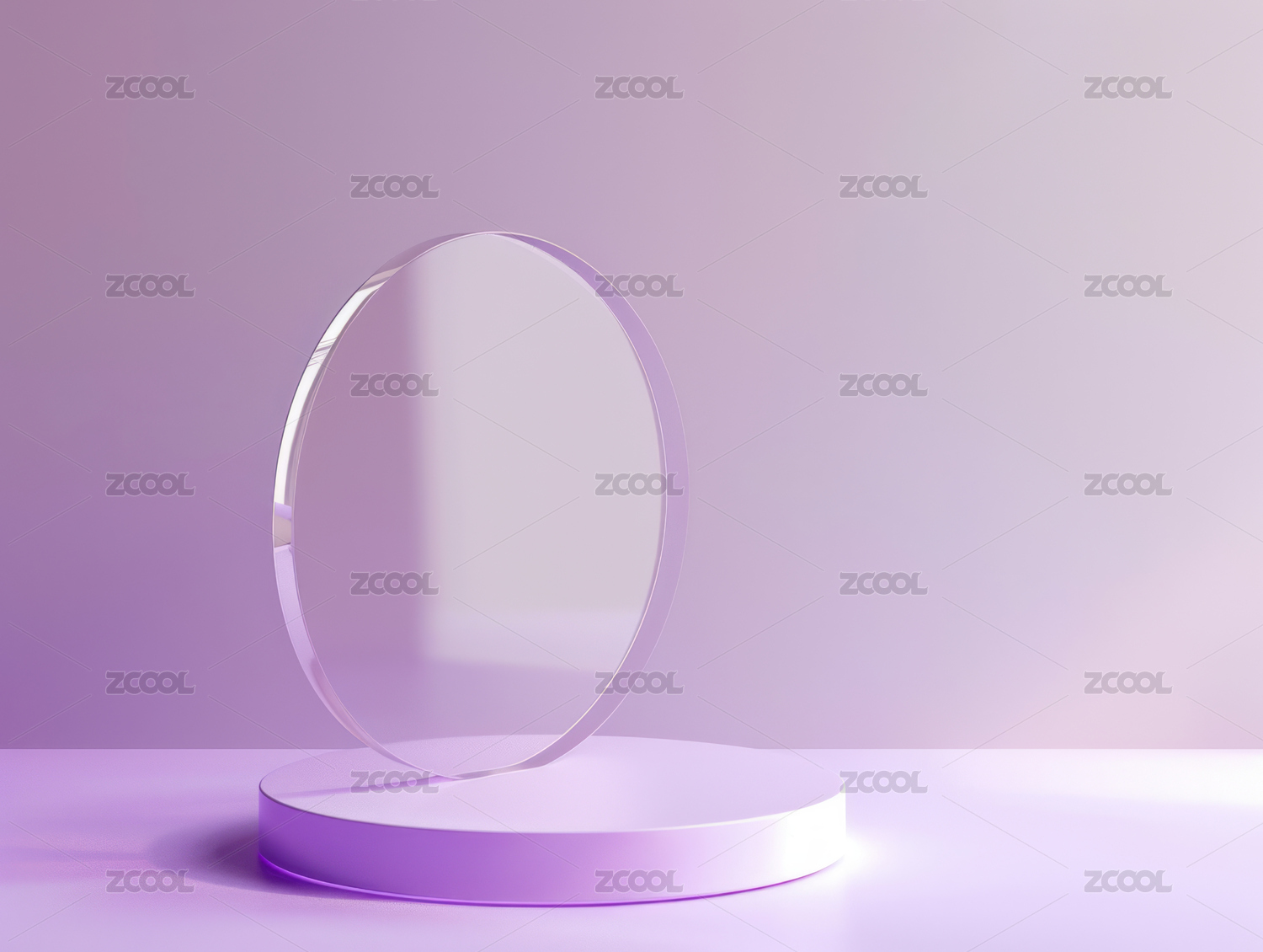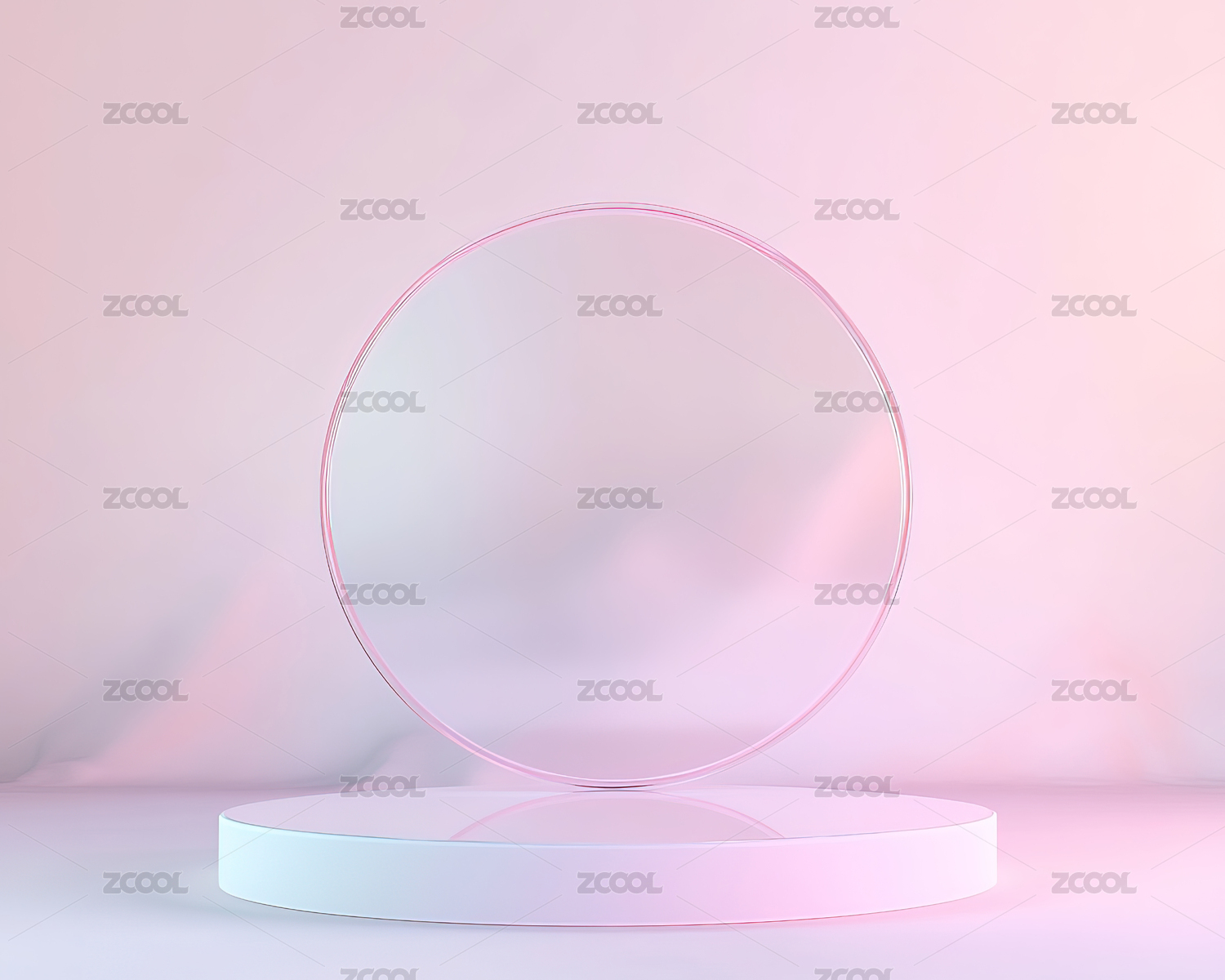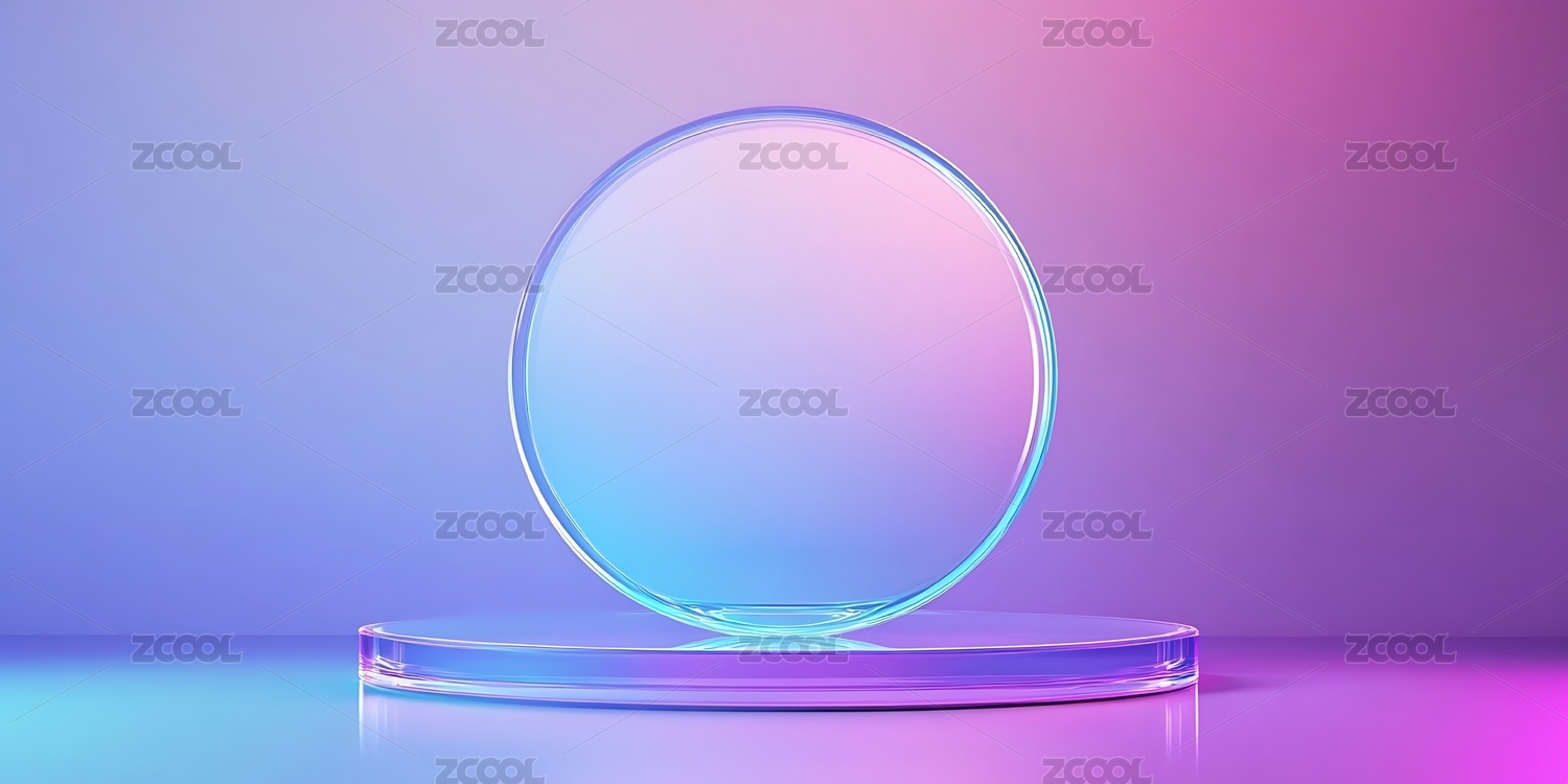 粉色蓝色梦幻背景下悬浮透明圆盘