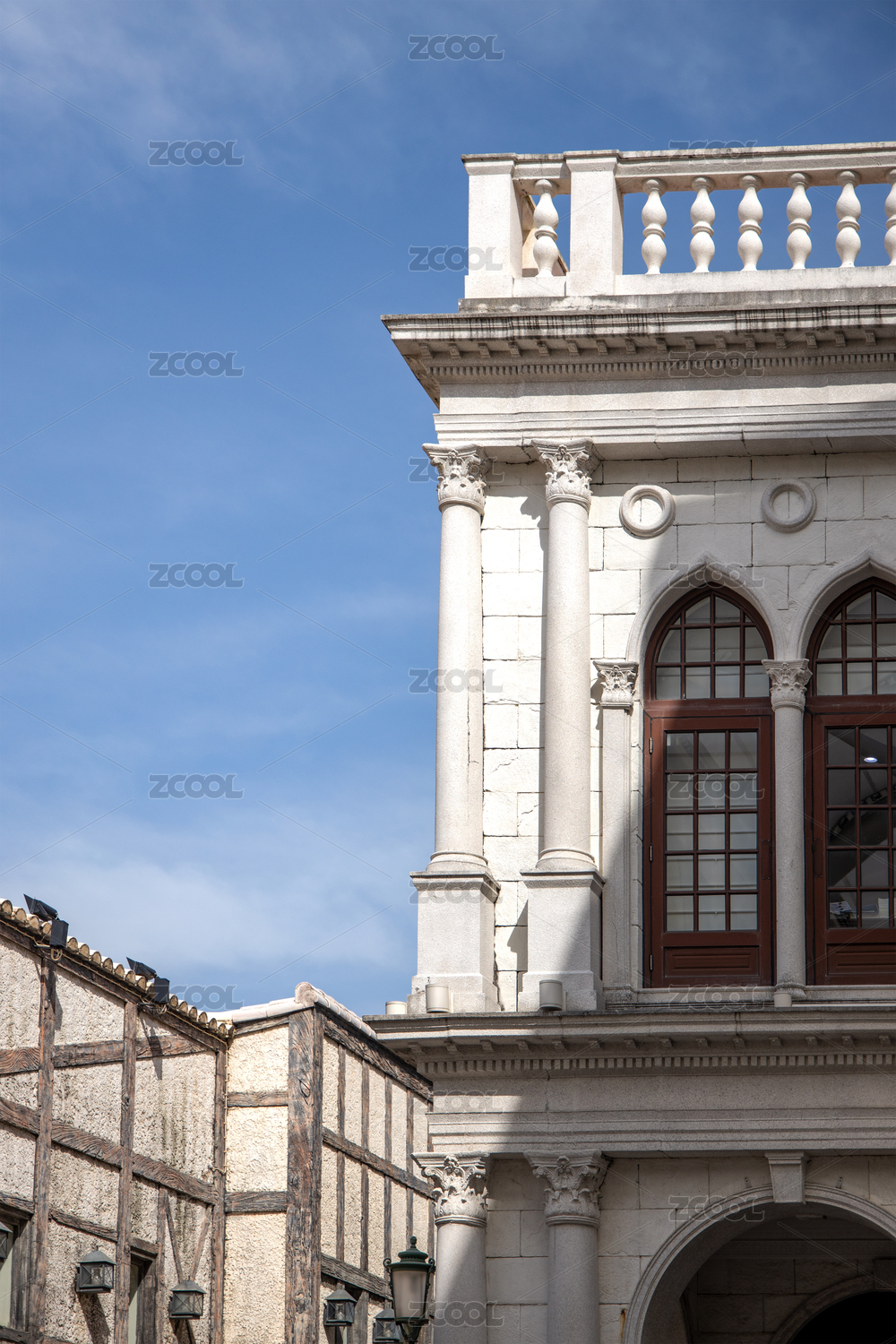 上海佛罗伦萨小镇欧式钟楼建筑特写