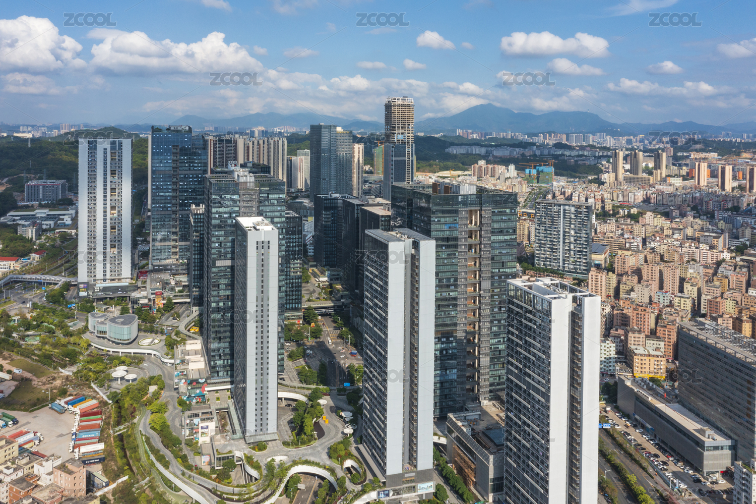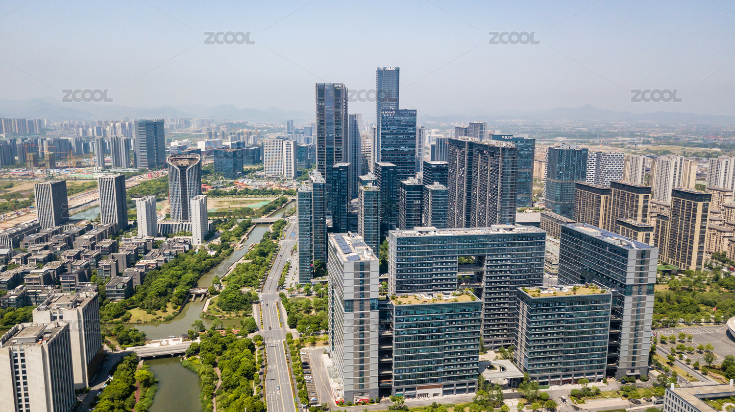 杭州滨江区新建城市商务写字楼园区建筑群航