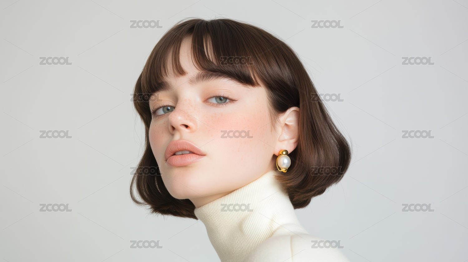 肖像,人像,外国人,DXCZ202406,女性,美丽,短发,优雅,时尚,魅力
