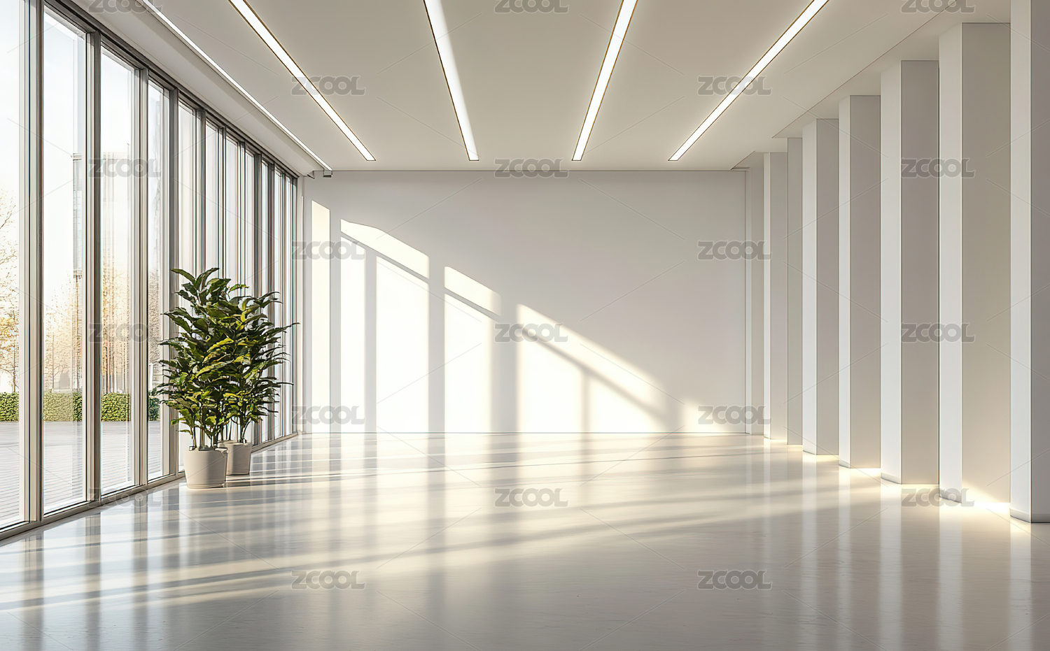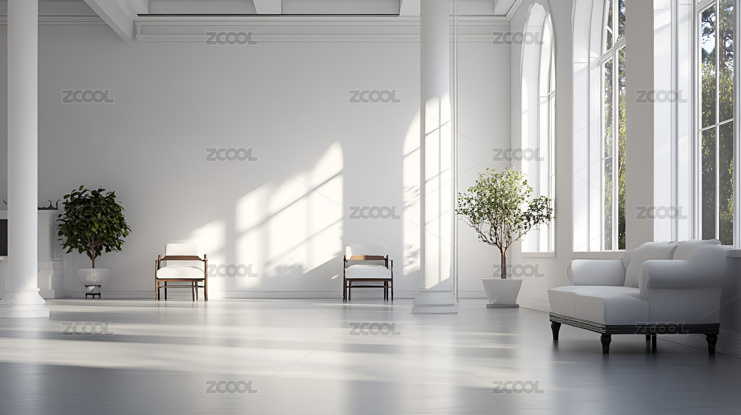 白色现代建筑室内空间设计背景