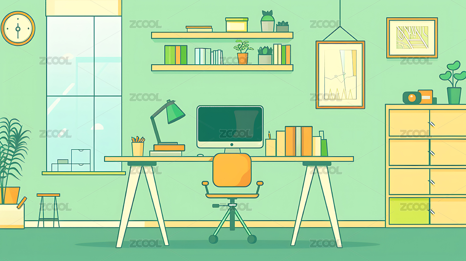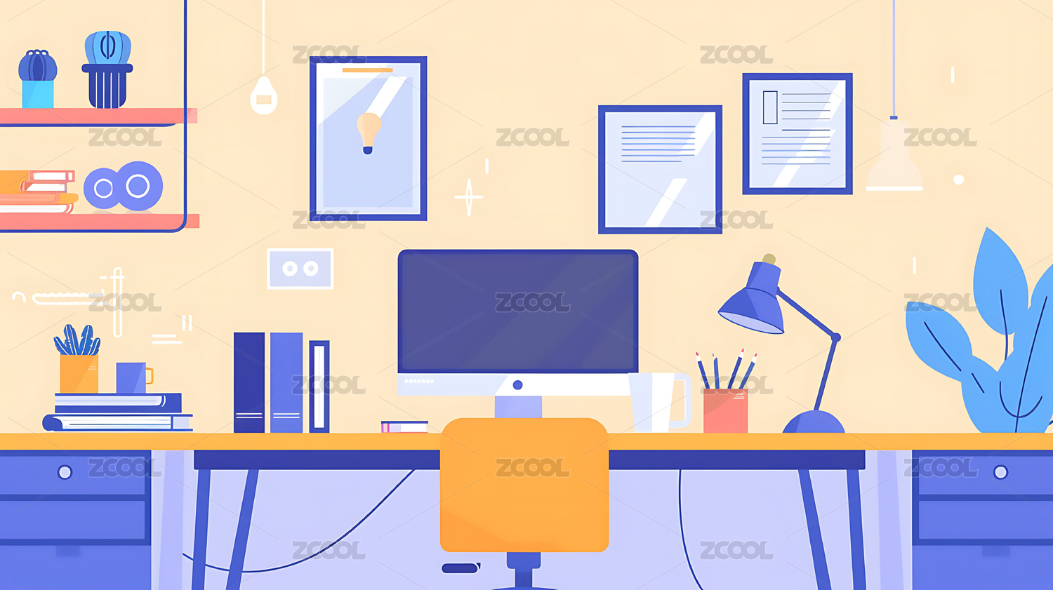 蓝色,书架,多肉,仙人掌,相框,钟表,椅子,电脑,笔筒,地摊