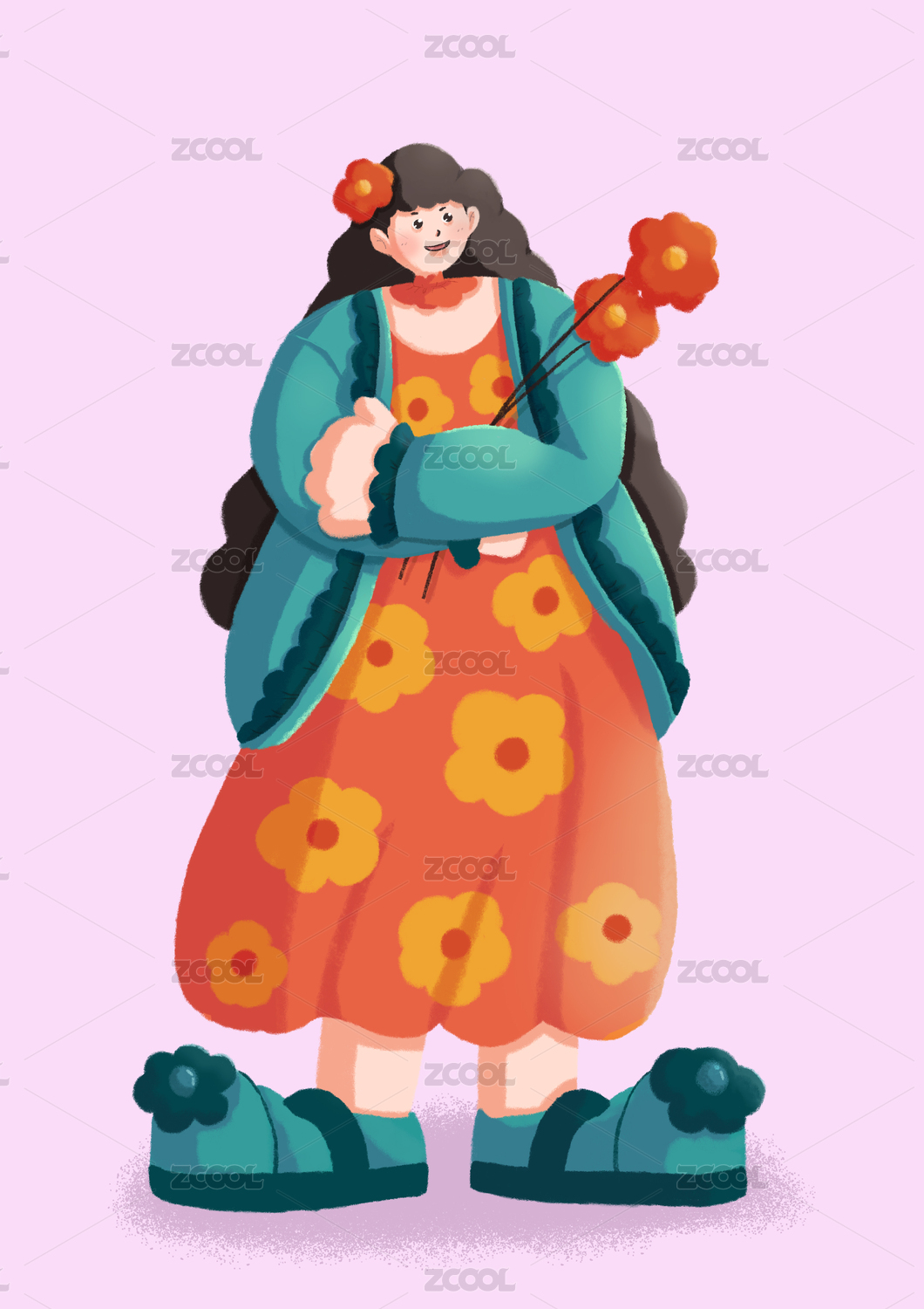 手绘卡通扁平女孩