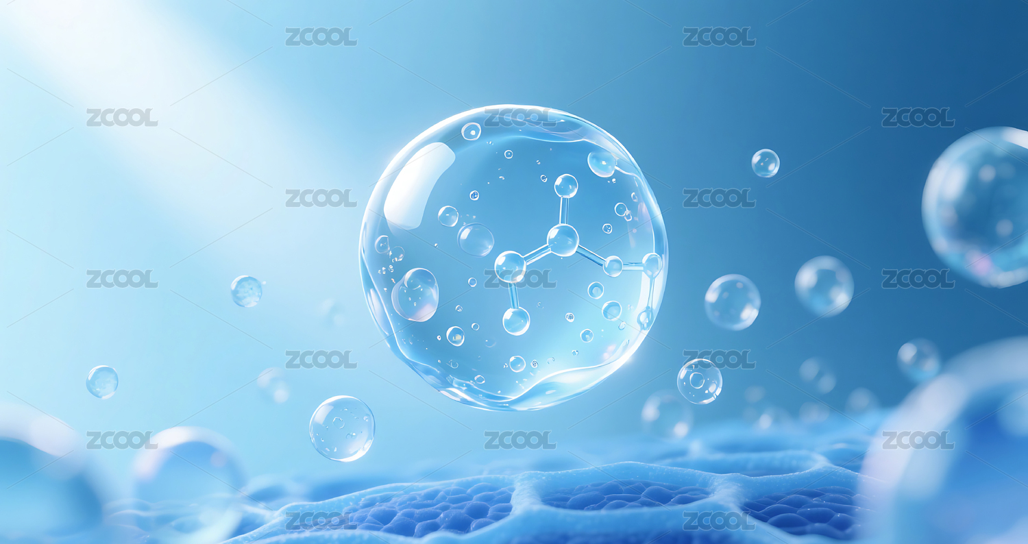 水背景液体气泡内的分子