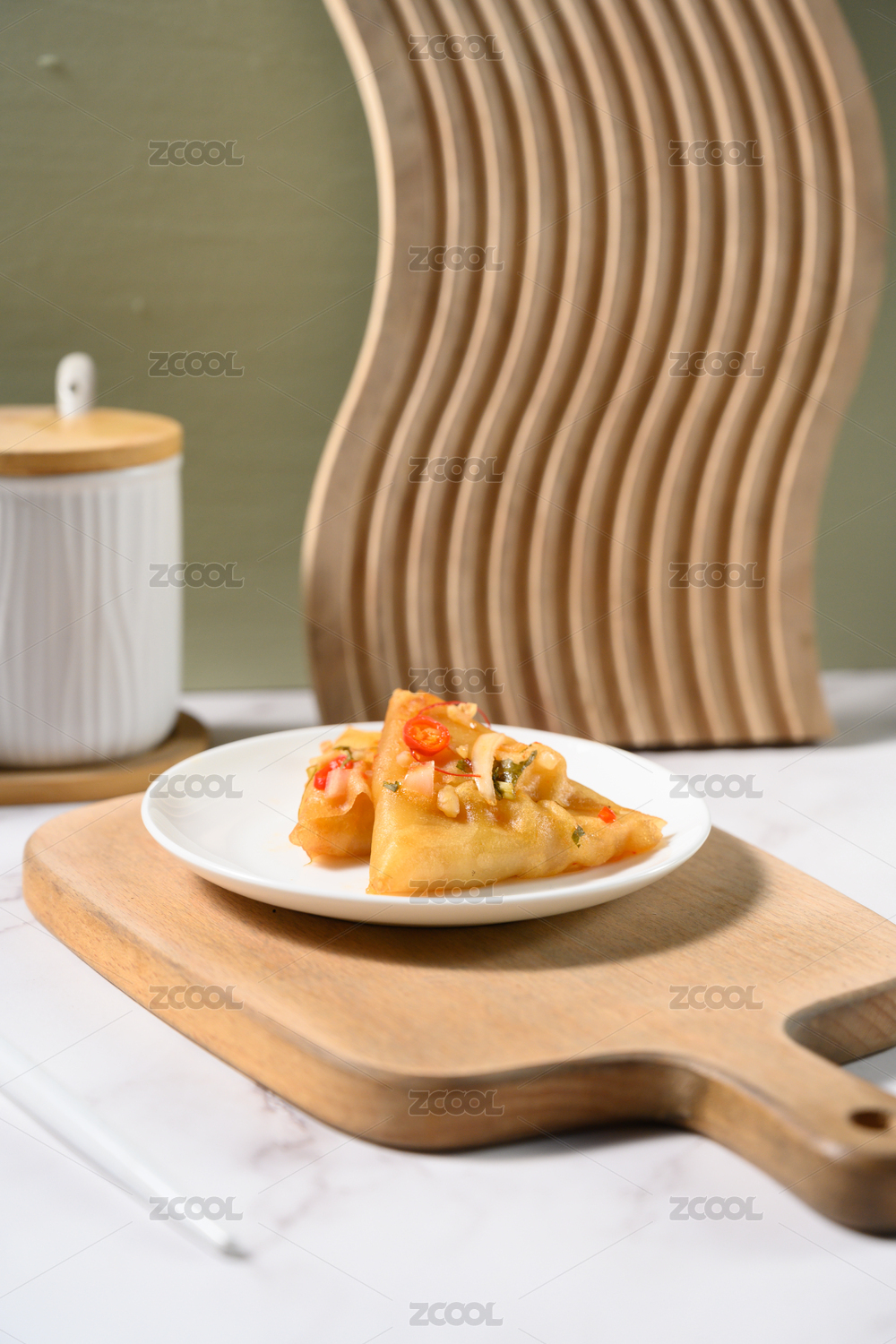 桌面上的盘子里的美味可口的凉拌黄花菜